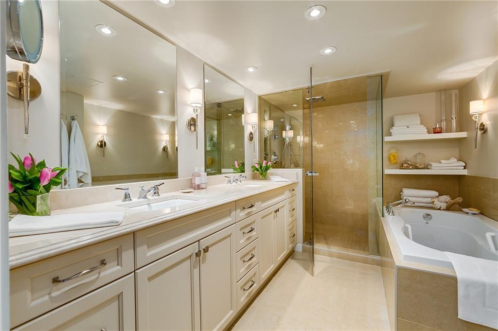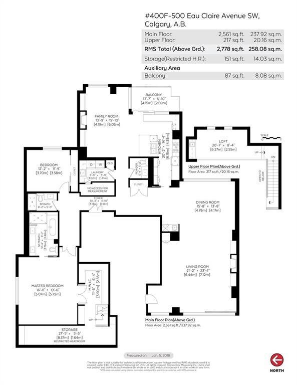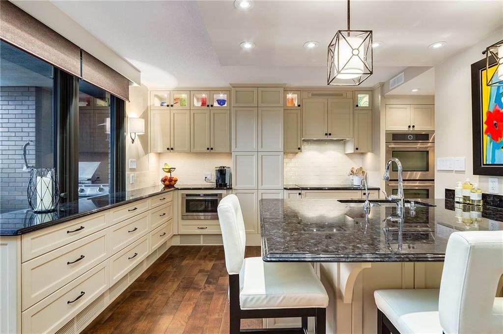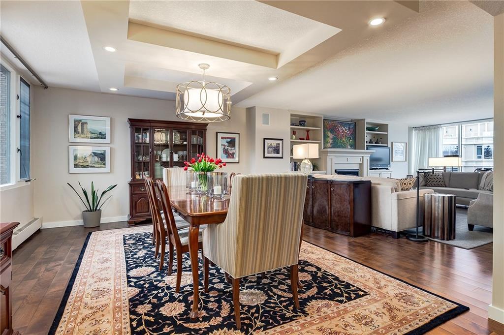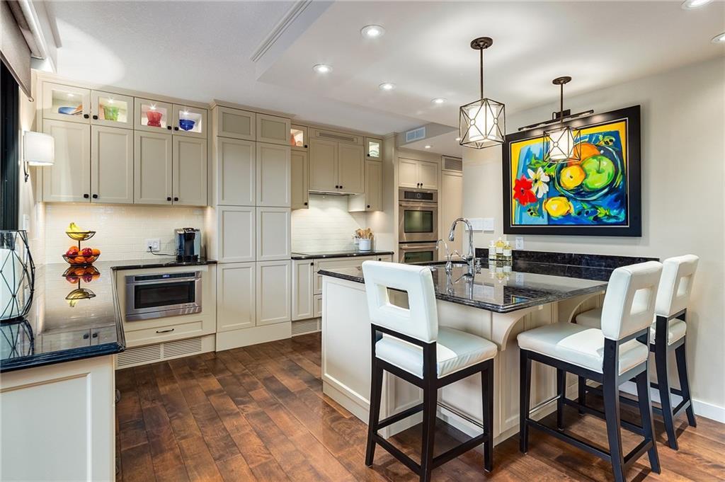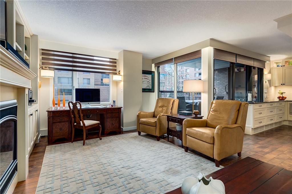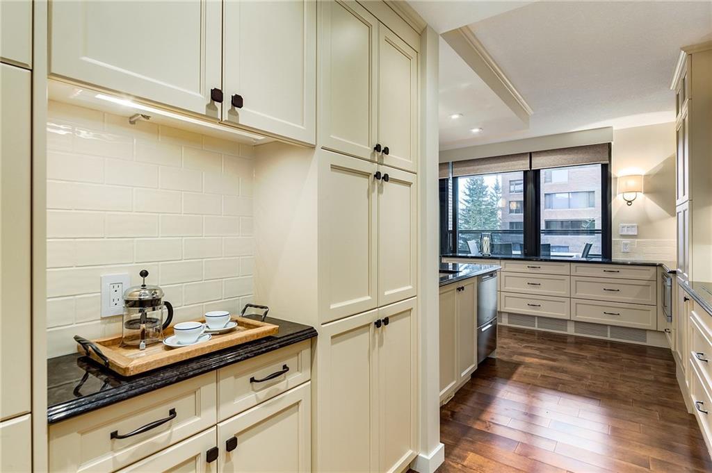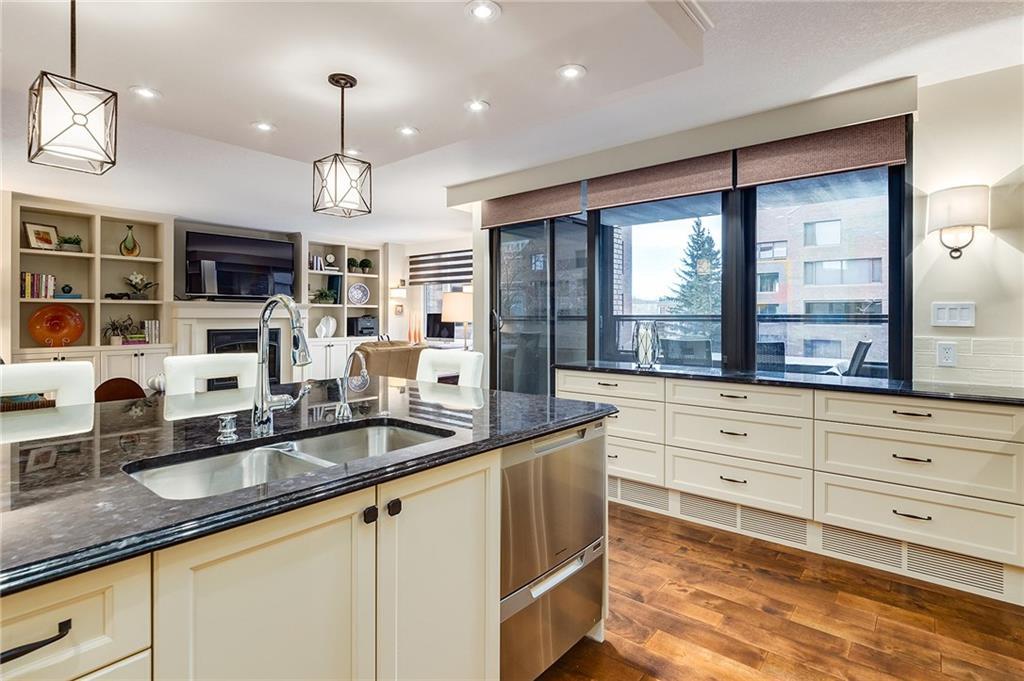 Refined elegance blended with an exacting attention to detail – luxury condos such as this are few & far between. Completely renovated in 2013, offering 2778 SF, you are sure to be impressed with this suite's generous living areas, rarely found in today’s market. Step off the elevator to your private vestibule before being welcomed into the suite’s gracious foyer. An abundance of windows - both east & west exposure, maximize the natural light in the suite & offer views overlooking the building’s inner courtyard, the Bow River & Prince’s Island Park. Beautiful gourmet kitchen with abundant pantry space, opens to your spacious balcony - an added bonus at prestigious Eau Claire Estates. Take time to relax in front of the cozy fireplace framed by built in shelving in the family room, adjacent to the kitchen. Entertaining family & friends is a dream in the spacious living room & dining room that will easily seat 12. At the end of the day the master retreat beckons: vaulted ceilings, spa-like 5 piece ensuite, HUGE custom walk-in closet with an amazing amount of additional storage & a truly unique loft area. Second bedroom with custom closet organizers, 2nd full bath, in-suite laundry w/sink & 2 piece powder room complete the floor plan. TWO titled parking stalls are included and the suite is fully air conditioned. Balcony is 13'7" x 6'10", an excellent size with room for your BBQ and a full sized patio table & 4-6 chairs. Eau Claire Estates offers luxury, lifestyle condo living that you’ve been dreaming of - prepare to be swept off your feet! Showcasing THE BEST, unparalleled amenities and conveniences – newly redesigned front lobby and hallways, on-site management, 24 hr concierge service, on-site newly renovated health club with indoor swimming pool, hot tub, exercise rm & change rooms, putting green, car wash bay, bike storage, south side sun deck adjacent to the owners lounge with full kitchen, raised garden spaces you can book, BBQ's and picnic tables, gorgeous central courtyard & of course a premier location in beautiful Eau Claire - so much to enjoy everyday! Steps to the Bow River pathway & 1 block to the +15 downtown walkway network and the new Eau Claire Athletic Club, a short walk to the Peace Bridge and across the river to Kensington shops, restaurants & boutiques. Call to view today!
