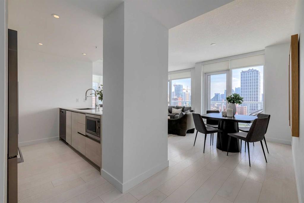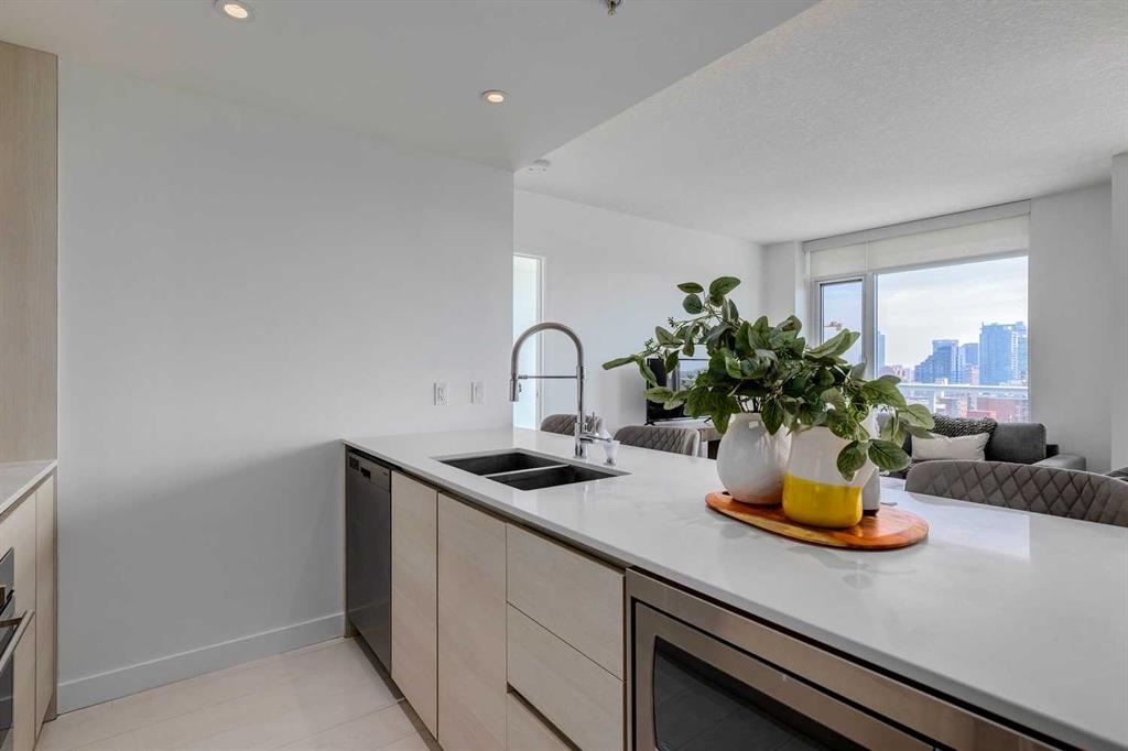 Welcome to effortless inner-city living at The Smith! This beautifully upgraded 2 bed, 2 bath condo offers an ideal layout for both daily living and entertaining, with gorgeous downtown views from nearly every room. Unlike most in the building, this unit features laminate flooring throughout – no carpet in sight – adding a modern and seamless feel to the space. The sleek, contemporary kitchen includes quartz countertops, flat-panel cabinetry, a gas cooktop, built-in oven, and stainless steel appliances, opening to a spacious living and dining area that’s perfect for hosting or relaxing after a busy day. Enjoy your morning coffee on the balcony while watching the city wake up, and take advantage of all the extras The Smith has to offer: concierge service, bike share program, owner’s lounge, secure bike storage, titled underground parking, and pet-friendly policies (2 pets max weighing no more than 25kg). With 17th Avenue just around the corner, you’re steps from Calgary’s top restaurants as well as parks, boutiques, and transit options. Urban convenience meets elevated design in this Beltline gem.