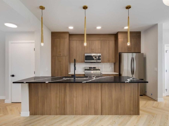 LIMITED TIME PROMOTION - Choose 2 of 3: | FREE A/C (SUPPLY & INSTALL) | 2 YEARS FREE CONDO FEES | $5,000 TOWARD WINDOW COVERINGS! Introducing the Meridian at Livingston by Brookfield Residential – where style meets convenience. This 1 bedroom, 1 bathroom townhome is perfect for first-time buyers or investors, offering a bright, open-concept layout with and upgraded finishes throughout. The ‘Coltrane’ model features a sleek kitchen with quartz countertops, stainless steel appliances, full-height cabinetry, a pantry, and a spacious peninsula island with seating. The south-facing windows fill the living and dining areas with natural light, creating a warm and inviting atmosphere all day long. The generous primary bedroom includes a large closet and patio views, while a 4-piece bath, in-suite laundry, and extra storage add everyday practicality. Complete with a titled parking stall, this home is set in Livingston, a vibrant new community with parks, playgrounds, a dog park, the HOA facility (Livingston Hub), and convenient access to major routes. Don’t miss the chance to own a brand new low-maintenance home with incredible value in one of Calgary’s most exciting new neighbourhoods. Builder warranty and Alberta New Home Warranty are included - allowing you to purchase with peace of mind. **Please note: photos are of a staged home and exact finishes will vary.