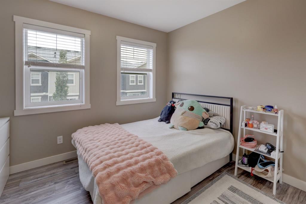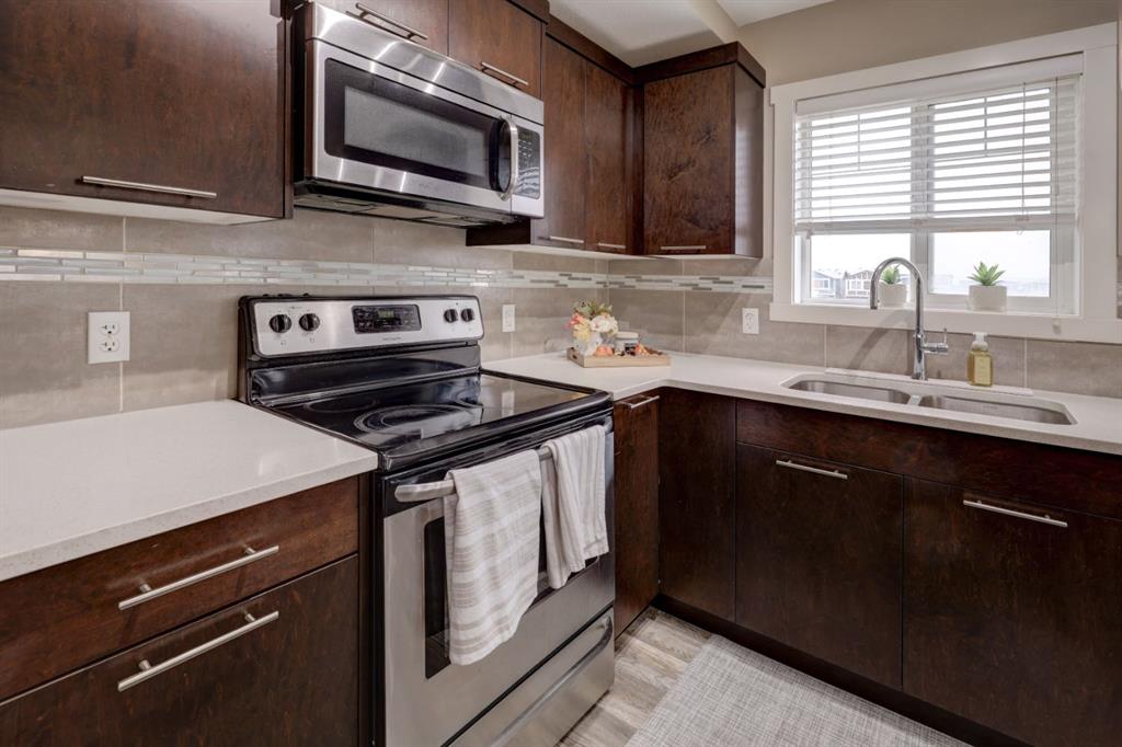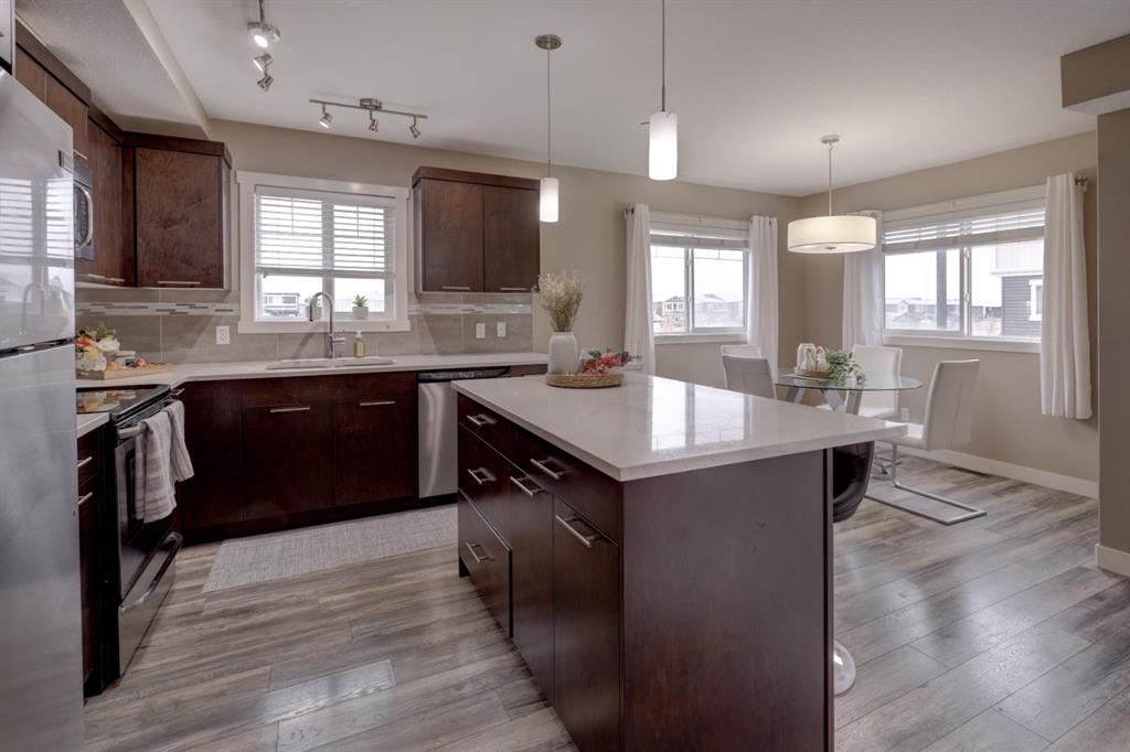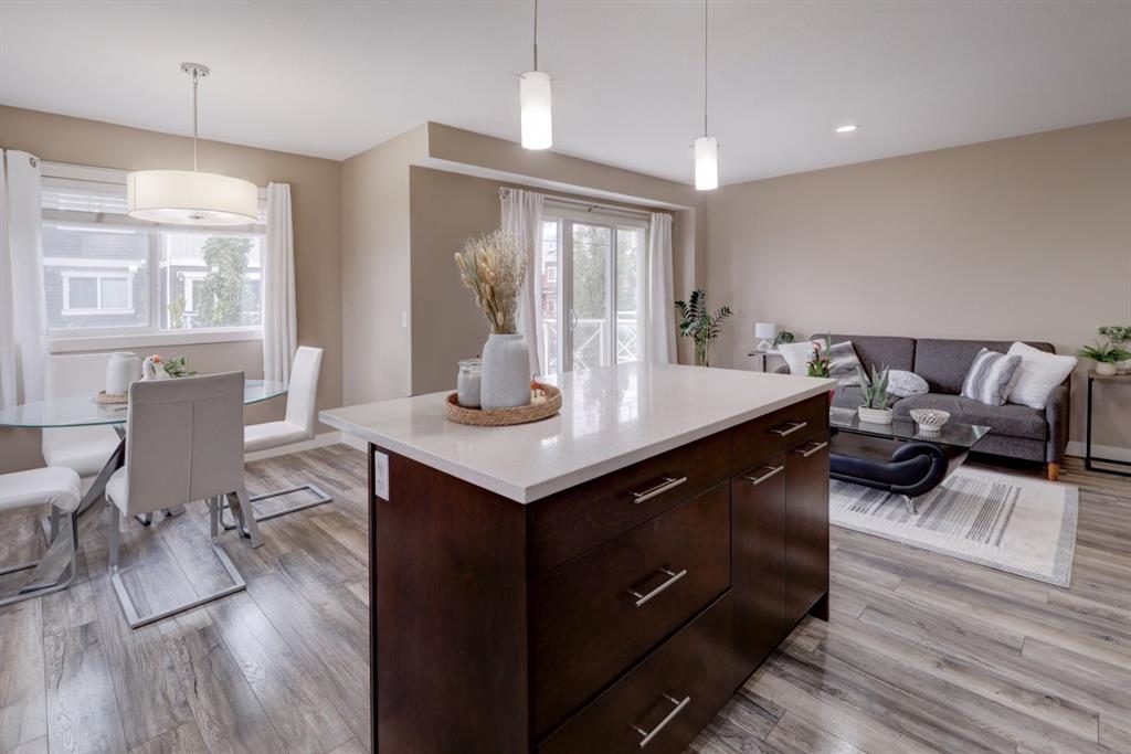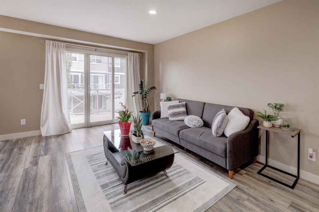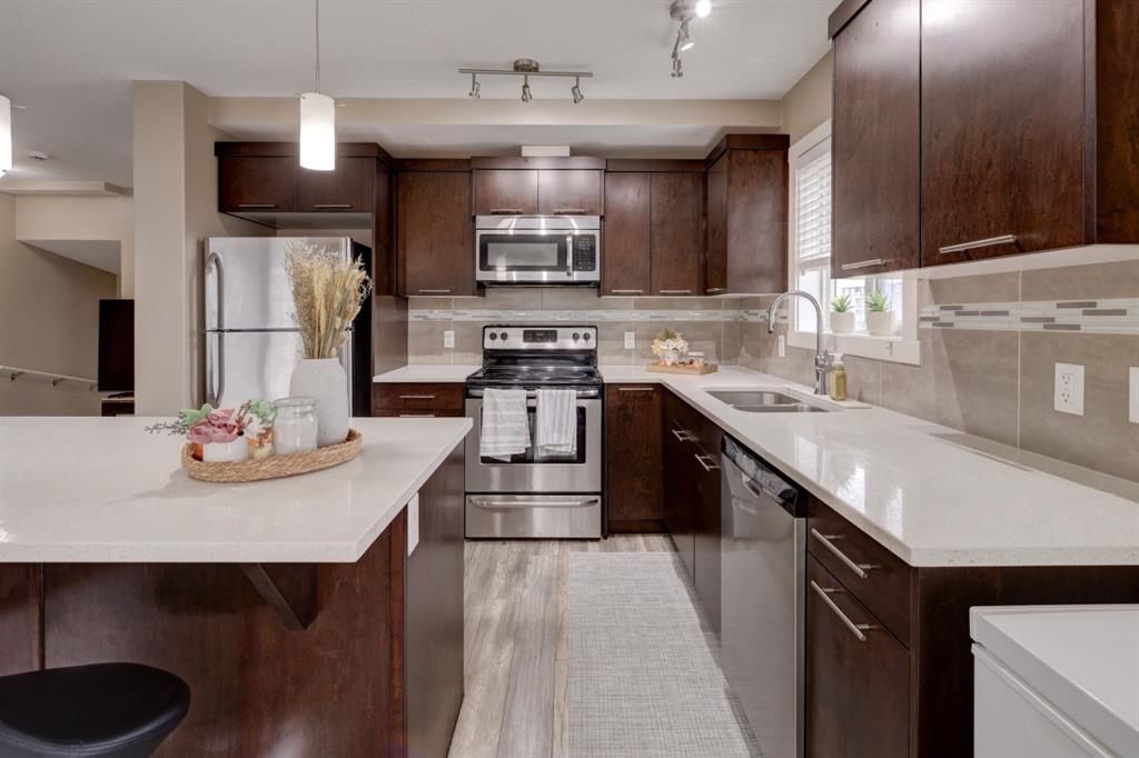 HOME SWEET HOME! Welcome to your stunning Townhouse in the family-friendly community of Skyview Ranch! Step inside this beautifully updated END UNIT 4 BEDROOM TOWNHOUSE offering over 1,604 SQFT of comfortable, modern living space. The main floor features a versatile bedroom, perfect for guests, a home office, or a gym. Head upstairs to the bright and airy open concept living area, where large windows fill the space with natural light. The gourmet chef's kitchen is well designed with plenty of counter and cupboard space, quartz countertops, a quartz island with a breakfast bar and stainless steel appliances , opening to a spacious dining area that flows seamlessly onto your private balcony, the perfect spot to enjoy your morning coffee. This level also includes a convenient 2-piece powder room and convenient in-suite laundry. On the top floor, you’ll find a spacious primary bedroom complete with a 4-piece ensuite and walk-in closet, plus two additional bedrooms and another 4-piece bathroom, providing plenty of room for the whole family. RECENT UPDATES include new vinyl plank flooring throughout and fresh paint, giving the entire home a fresh, modern feel. Additional highlights include an attached single car garage with a driveway for extra parking, and visitor parking conveniently located right beside the unit. Situated in a quiet part of the complex, you’ll also enjoy extra green space which is IDEAL FOR PET OWNERS and added privacy with your side entrance. This well maintained home is close to schools, parks, shopping, restaurants, and major roadways, making it ideal for families or investors alike. Book your private tour of this GEM today!