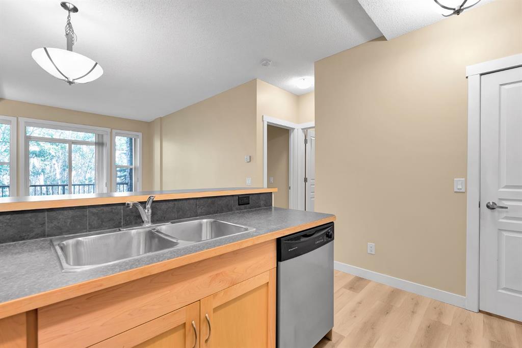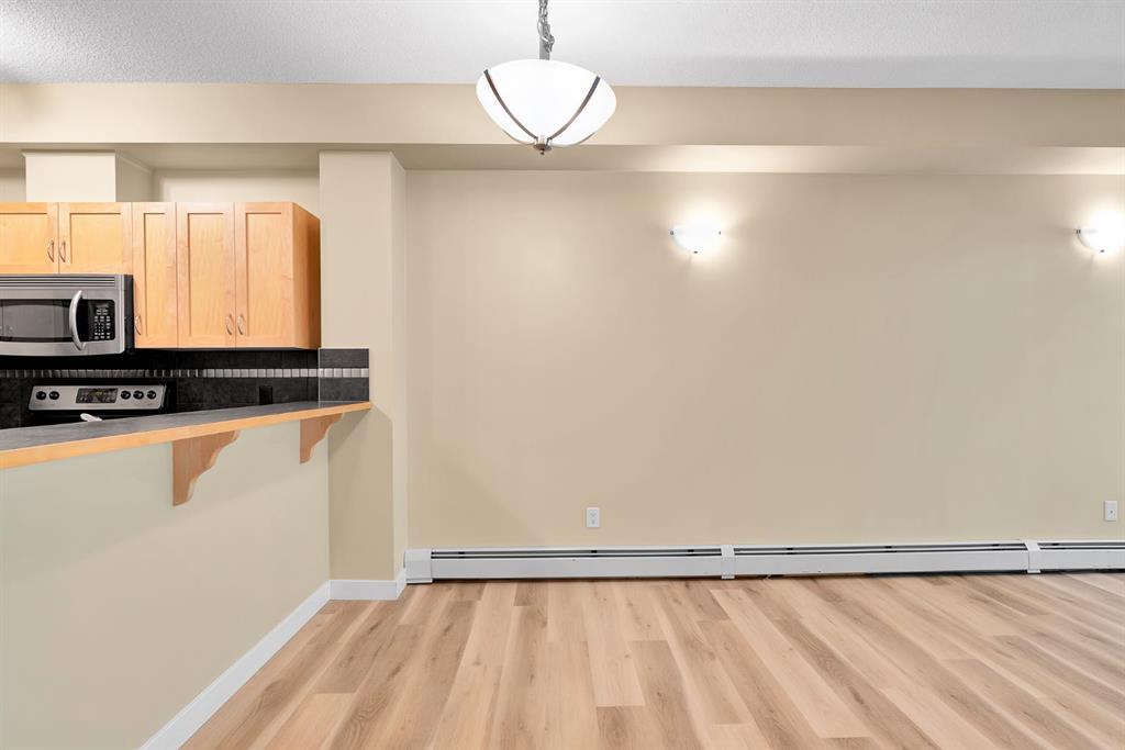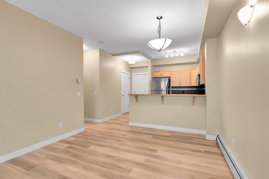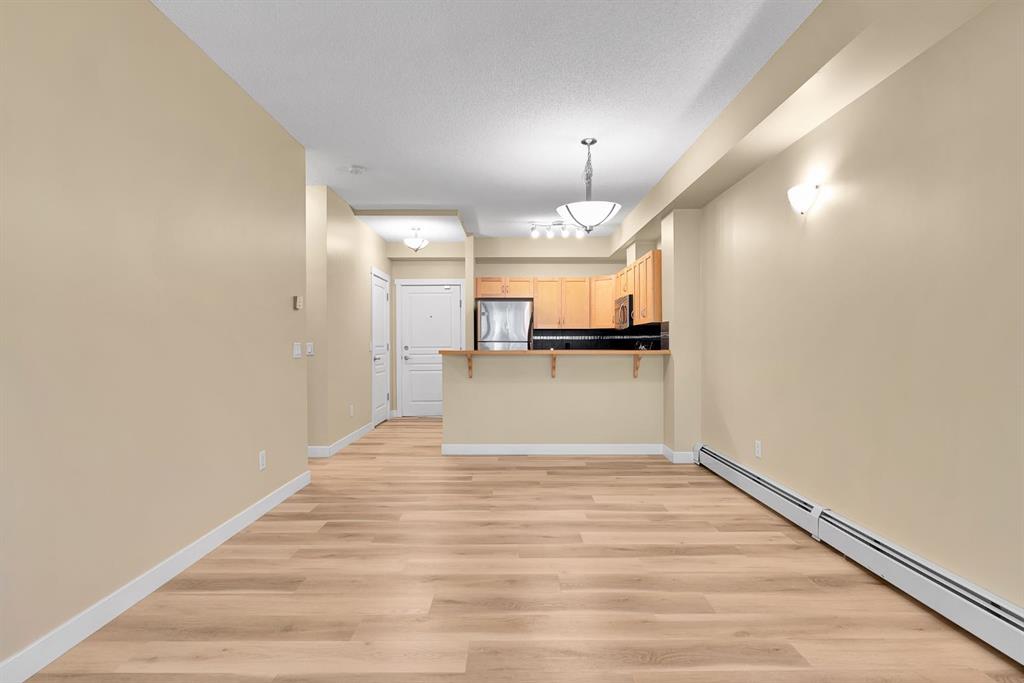 Fantastic Opportunity for First-Time Buyers or Investors! Experience the vibrant West End lifestyle in the sought-after community of Aspen Woods with this beautifully updated 1-bedroom, 1-bathroom condo in Gallant Ridge. This bright, north-facing unit features 9-foot ceilings, brand-new luxury vinyl plank flooring, and fresh paint throughout. The open-concept layout includes an upgraded kitchen with stainless steel appliances, a raised breakfast bar, and a spacious living area that opens to your own private patio and looking out to greenspace —perfect for relaxing or entertaining. Additional highlights include a large in-suite storage room that could double as a den, in-suite laundry with a new stacked washer/dryer (2024), and a titled underground heated parking stall to keep your vehicle safe and warm year-round. Ideally located just a short walk to Aspen Landing Shopping Centre, with restaurants, cafes, groceries, and other everyday essentials right at your doorstep. You're also minutes from top-rated schools, Westside Recreation Centre, the Calgary LRT, and have easy access to Stoney Trail for effortless commuting. Don't miss this turn-key unit in one of Calgary’s premier neighbourhoods—book your private showing today!