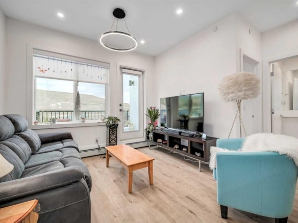 Step into a life of style and ease with this gorgeous, three-story townhome nestled in the highly sought-after Westmount, Okotoks community. Built by the trusted team at Slokker Homes, this property is your launchpad for modern living in a prime, family-friendly location. The bright, open-concept main floor is designed for seamless entertaining. You'll love the airy feel created by soaring knockdown ceilings and the flow of the durable vinyl plank flooring. The kitchen is a true showstopper: Quartz counters, high-end stainless steel appliances and chic, two-tone cabinetry with soft-close drawers. Upstairs, you'll find two generous bedrooms, including the relaxing primary suite with its own full ensuite bathroom. A well-placed laundry area on this level makes laundry a breeze. Location is everything, and this one delivers! Enjoy the security and convenience of an attached garage plus an EXTRA TITLED parking stall!. Your prime Westmount spot puts you steps from the Daily errands and weekend fun are simple with the Westmount Centre retail hub—offering essential shopping, dining, and services—just minutes away. This home beautifully blends sophistication, comfort, and unbeatable location, providing the perfect base for your vibrant life in the foothills.