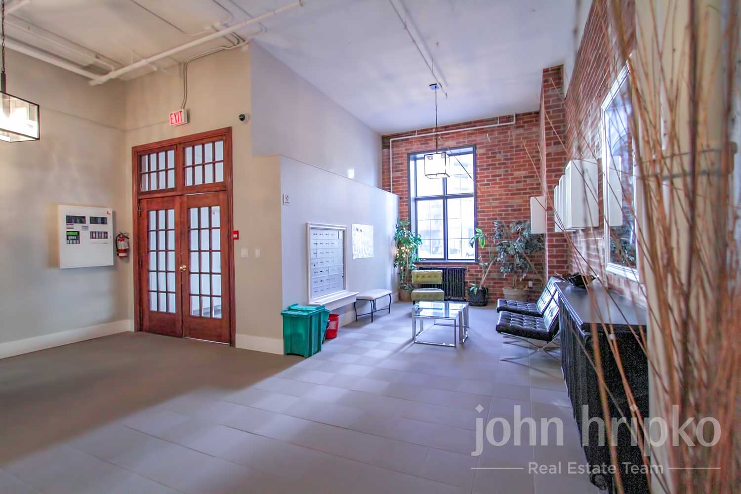 The building comprises 26 unique residential units, each exuding industrial character with features such as exposed brick walls, concrete framework, and soaring 13-foot ceilings. Large industrial-style windows flood the spaces with natural light, enhancing the open-concept layouts that range from approximately 600 to over 1,200 square feet.