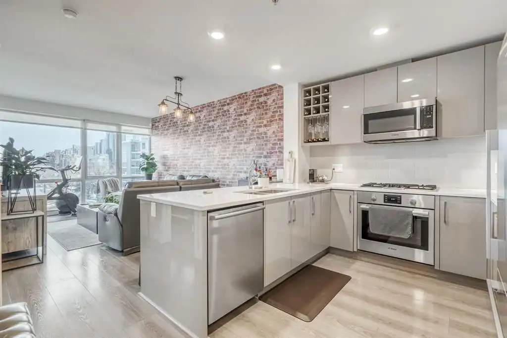 Modern Interiors: Quartz countertops, gas cooktops, Bosch and Fisher & Paykel appliances, and high ceilings.