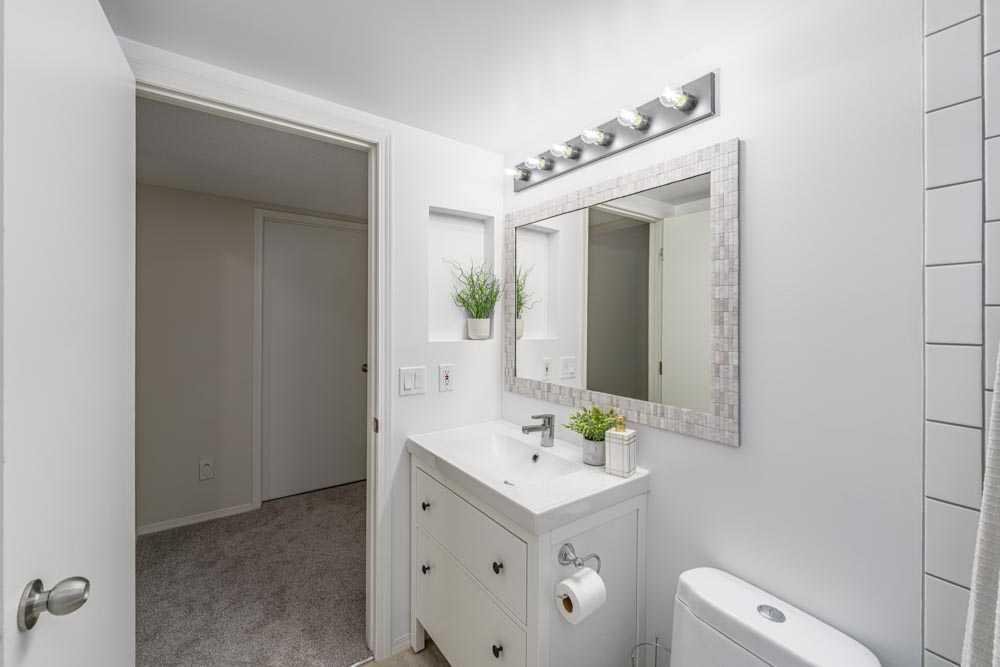 The lower level continues the open, airy feel with two additional bedrooms or flexible living areas, large windows, a fully renovated bathroom, and dedicated laundry and storage space.