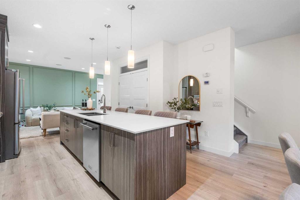 Welcome to this fully upgraded townhouse in Crescent Heights offering 4 bedrooms, 4.5 bathrooms, and over 2,600 SQFT of developed living space. This duplex-size townhouse provides ample living space with the benefit of low maintenance living. As you step inside you are greeted with 9ft ceilings on every level, NEW luxury vinyl plank flooring, and a thoughtful open-concept layout. The main floor showcases a stylish living room with custom wall moulding, a cozy gas fireplace, and a dining room that is great for entertaining. The gourmet chef’s kitchen features floor-to-ceiling cabinetry, sleek quartz countertops, GAS range, built-in stainless steel appliances, large pantry, NEW designer backsplash, and an oversized island. A powder room completes this level. Upstairs, you’ll find two large bedrooms, including one with its own ensuite, PLUS a second full bathroom. The spacious laundry room features a folding station, a sink, and ample storage, all conveniently located on this floor. The entire top level is dedicated to the PRIVATE primary suite, complete with a spacious bedroom, modern accent wall, massive walk-in closet, a luxurious 6pc ensuite with HEATED floors, PLUS a cozy lounge/bonus area with partial CITY SKYLINE VIEWS from your SOUTH and WEST windows. Built-in ceiling speaker throughout. The FULLY FINISHED basement features another bedroom, full 4pc bathroom, rec room, and storage. This property is TURN KEY. Additional upgrades include: Upgraded attic insulation, electronic locks on both front and back doors, new fan timers in bathrooms, AC & furnace servicing with duct cleaning. Added peace of mind with a complete building envelope overhaul. Outside, enjoy your private deck and single detached garage. Low condo fees of only $300/month make this home even more attractive. Nestled on a quiet, tree-lined street, with easy access the Bow River Pathway, Rotary Park, Crescent Heights Park, and the iconic McHugh Bluff lookout. With nearby schools, transit, coffee shops, and trendy restaurants, you’ll have everything you need just steps from your door.