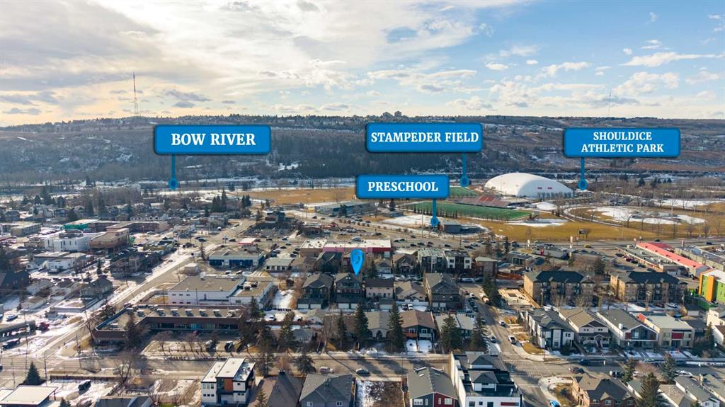In real estate, location is everything — and Montgomery is one of those rare communities that truly delivers. Steps from the Bow River pathways and surrounded by beloved local cafés, shops, and green space, this beautifully appointed front-unit townhouse in a modern four-plex offers elevated inner-city living without compromise. With south-facing exposure and a sunny front patio, this well-maintained home is filled with natural light and offers nearly 2,200 sq ft of total developed living space across four finished levels. Every floor has been thoughtfully designed to balance style, comfort, and everyday function. The main level impresses with 9-foot ceilings and a bright open-concept layout that’s ideal for entertaining. The gourmet kitchen anchors the space with quartz countertops, sleek cabinetry, stainless steel appliances, and a central island perfect for gathering. Rich hardwood flooring carries into the inviting living room, where a gas fireplace adds warmth and character. A tucked-away 2-piece powder room completes this floor. On the second level, the primary bedroom serves as a relaxing retreat with a walk-in closet and private 4-piece ensuite. A second spacious bedroom, another full 4-piece bathroom, and convenient stackable laundry provide excellent functionality for families, guests, or roommates.