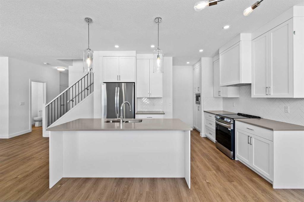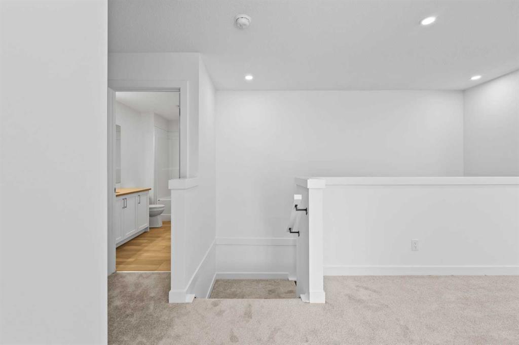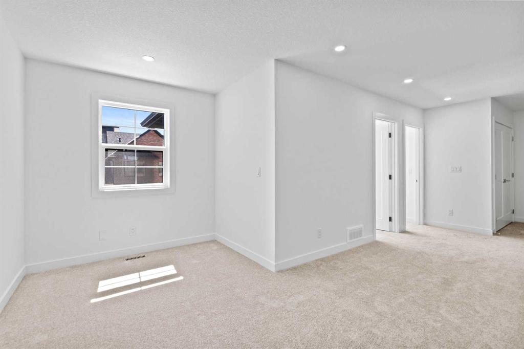 Welcome to luxury and convenience built by Vesta Properties - in the heart of Airdrie’s award-winning community of Cooper’s Crossing. This brand-new beautifully crafted interior-unit townhome combines everyday comfort with smart design. Step inside to discover a bright, functional main level that includes a stylish gourmet kitchen with an oversized island and stainless steel appliances, a cozy family room. Upstairs, a sun-soaked bonus room offers the perfect space to unwind, work from home, or enjoy family time. Just off the bonus area, you’ll find two additional bedrooms, a full bathroom, and a convenient upstairs laundry space ( No washer and dryer in unit). Also you will find your primary bedroom, which is a retreat complete with vaulted ceilings and a spa-inspired ensuite. Enjoy the added luxury of 9-foot ceilings on both the main floor and the basement, creating a spacious and airy atmosphere throughout.