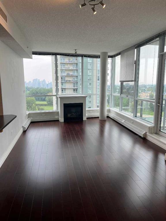 Enjoy spectacular views of downtown Calgary and Shaganappi Golf Course from this bright, air-conditioned two-bedroom, two-bathroom corner unit. Featuring titled underground heated parking stall, this spacious home offers a formal dining area, a large living room with a cozy fireplace, and a functional kitchen and a generous window for natural light. Step out onto the east- and south-facing balcony—perfect for soaking in the sunshine all day.