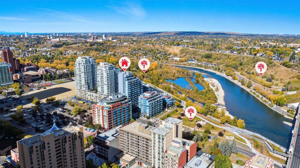 The location places you along the Bow River pathways, next to Sien Lok Park and steps from Prince’s Island Park. Downtown Calgary’s restaurants, cafés, and business district are within walking distance, with the planned Eau Claire LRT station adding future convenience and connectivity.