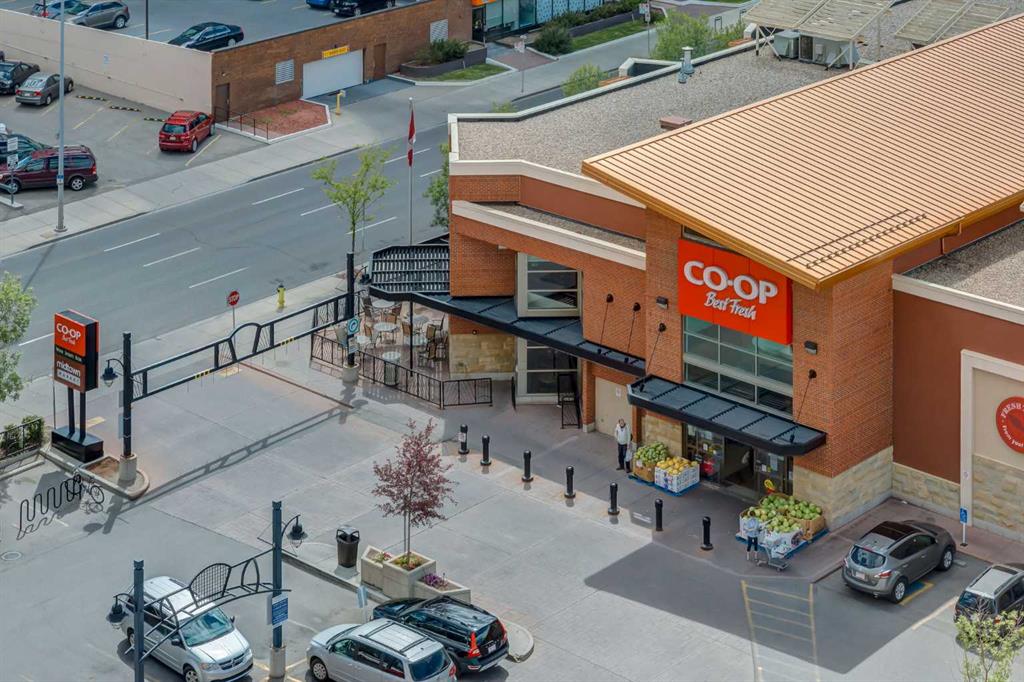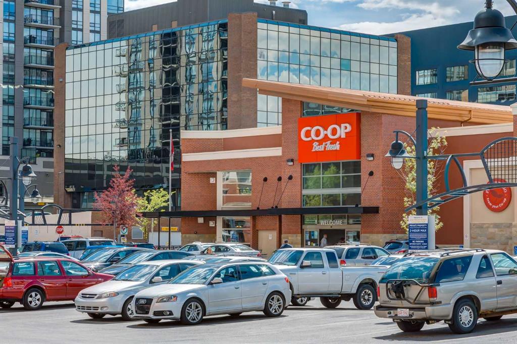 Welcome to this spacious 822 sq. ft. two-bedroom, two-bathroom unit, beautifully maintained and in immaculate condition. This bright west-facing unit offers a fantastic, unobstructed view, perfect for enjoying sunsets from your large balcony complete with a BBQ gas line. The open-concept floor plan features 9-foot ceilings, in-suite laundry, and thoughtfully designed living space ideal for both comfort and entertaining. The building offers exceptional amenities including a fully equipped gym, steam room, on-site Co-Op, 24/7 concierge and on-site security, underground visitor parking, and a secure bike storage room. This unit also includes underground titled heated parking. Enjoy unbeatable convenience with Safeway, Community Health Foods, restaurants, the river pathway system, and the C-Train station all within walking distance. Condo fees includes fantastic amenities and electricity, making this home an excellent value in a highly desirable location. A perfect opportunity for professionals, investors, or anyone seeking an urban lifestyle with comfort and convenience.