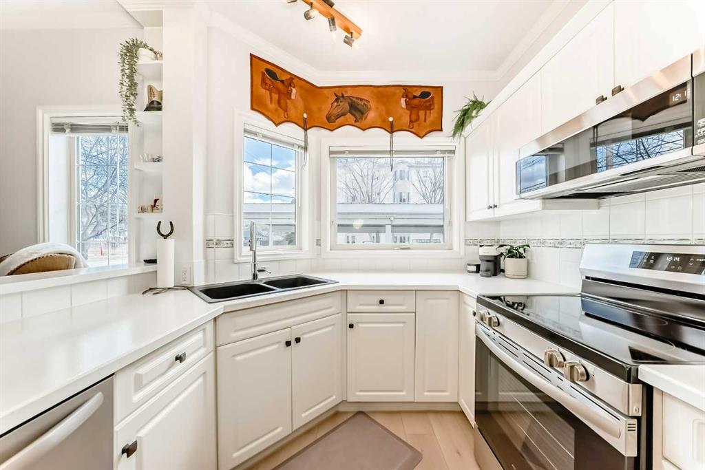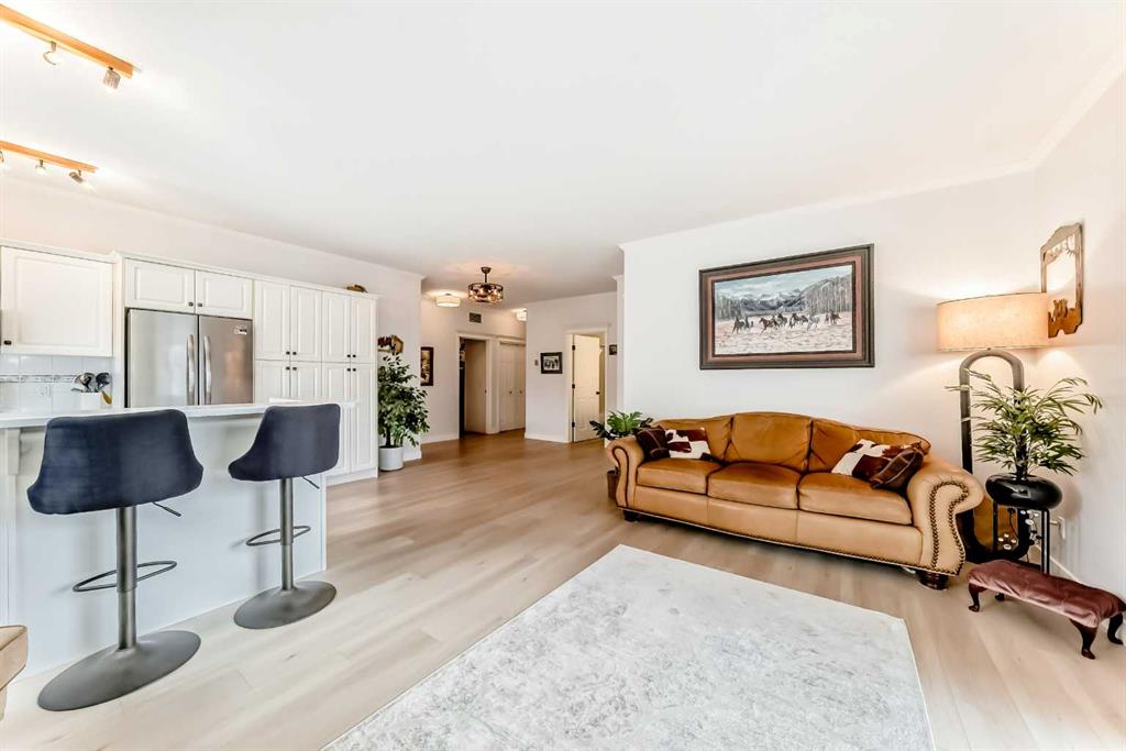 Your search stops now! Welcome home to this quiet, pet-friendly, 45+ building, where a spacious and turnkey 2 bed 2 bath unit in the highly desirable area of Olde Town Okotoks awaits you. Enjoy walking distance to many shops, cafes, restaurants and riverside pathways. Lovingly updated, this gem has over $40,000 in renovations in the last year including new LVP flooring, stainless steel appliances, new washer and dryer, kitchen countertops, a new kitchen sink and faucet, new bathroom vanities, new toilets, and all light fixtures. Behind the scenes you also have a new furnace heating system and hot water heater. Plenty of windows to let in the eastern morning sun and it stays nice and cool in the summer without the need for AC. Take advantage of the large ground-floor walkout patio with a lockable fenced deck, steps from your assigned covered parking space with plug-ins - easy access to the street and no waiting for the elevator! Ample street parking and seven private visitor parking spots are available. Fall in love with the charm of downtown Okotoks and indulge in the many events and festivities year round right outside your doorstep that make it a wonderful place to live.