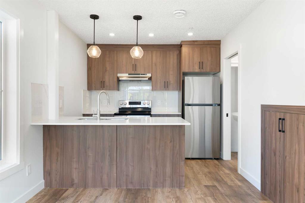Welcome to this brand new, never occupied townhome in the sought after community of Greystone. This 2 bedroom + den and 1.5 bath home offers maintenance free living perfect for a first time buyer, downsizer or investor. As you step into this end unit you will find a bright open concept living, dining and kitchen area completed with a breakfast bar. Completing this level is your powder room for the convenience of your guests. As you head upstairs you will find your primary bedroom retreat with large windows, a walk in closet and easy access to your full bathroom. As you head down the hall you will find a den that is perfect for a home office and offers a good sized balcony off of it. Finishing this home off is your south facing 2nd bedroom perfect for guests or children. Schedule a viewing today!