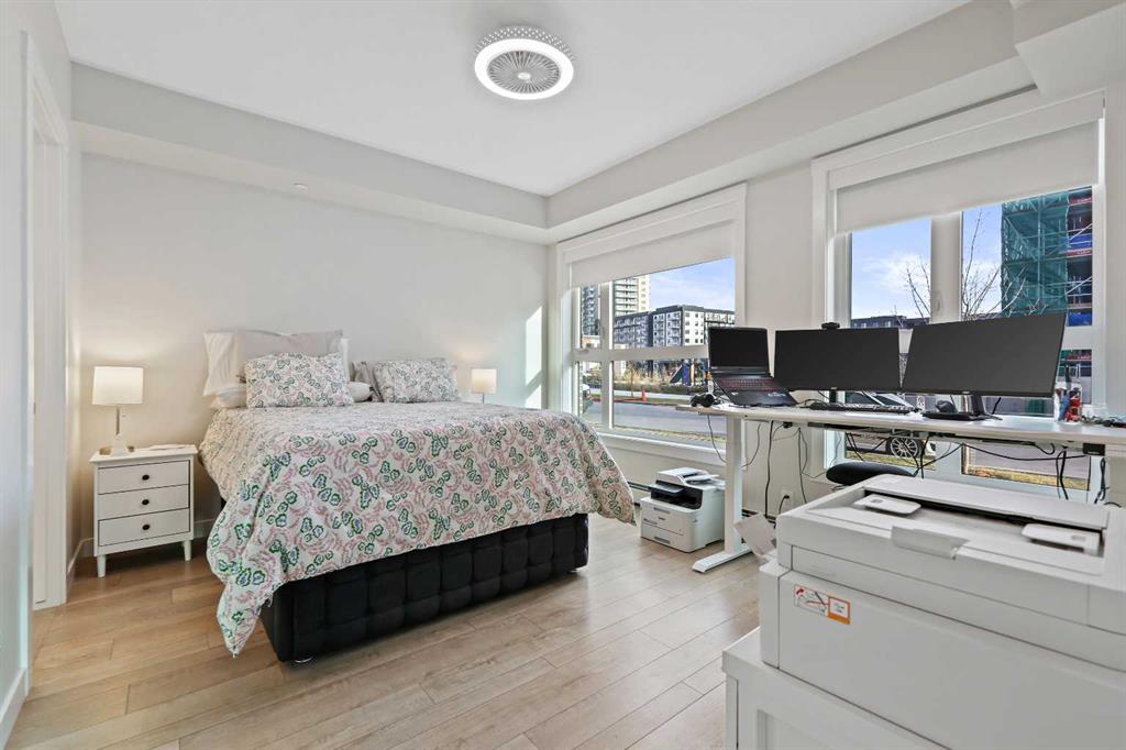 The spacious primary suite features a 5-piece ensuite, including dual vanities, a walk-in shower, soaker tub and private water closet. This home also comes with a good-size second bedroom, a full public/guest bathroom with a tub/shower combo, and a laundry room with space for shelving complete the well-designed layout. Also included with this home: an in-suite wall air conditioning unit, two upgraded ceiling fans, two titled heated underground parking stalls, two titled storage lockers, and access to the on-site fitness center. Enjoy the very best of the University District lifestyle—steps from parks, walking paths, Market Mall, U of C, Alberta Children’s and Foothills Hospitals, and local favourites like OEB Breakfast Co., Village Ice Cream, Monogram Coffee, The Canadian Brewhouse, Save-On-Foods plus so much more! Whether you are downsizing, investing, or seeking a contemporary, low-maintenance home in a thriving community, this home is ready to welcome you!