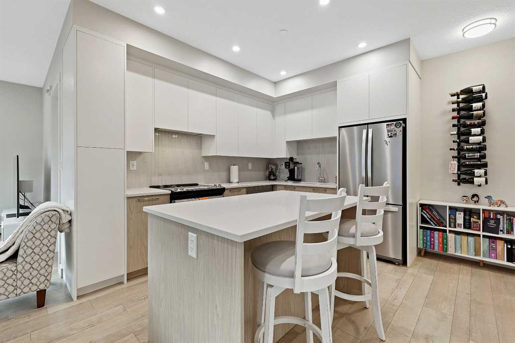 ** OPEN HOUSE SATURDAY, NOVEMBER 15 FROM 1:00PM - 5:00PM **Welcome to Capella in Calgary’s University District! This beautiful main-floor condo perfectly combines modern style, comfort, and convenience in one of the city’s most walkable and desirable communities. Offering nearly 1,000 sq. ft. of bright, open living space, this two-bedroom, two-bathroom home provides an abundance of natural light thanks to its sunny southern exposure. Step out to your spacious south-facing patio, ideal for entertaining family and friends, or just relaxing and enjoying warm, summer nights.