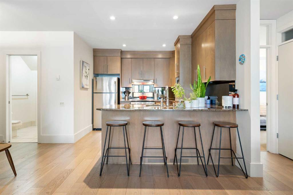 Welcome to this spacious and beautifully appointed 2 bedroom luxury condo in the SAM award-winning “Villagio Kensington,” a boutique 12-unit concrete building perfectly situated in the heart of the vibrant Kensington district. Just steps from the Bow River pathways, Riley Park, Hillhurst/Sunnyside Park, boutique shopping, restaurants, and minutes to downtown, this residence offers the ideal balance of upscale comfort and urban convenience. With 939 sq.ft. of well designed and efficient space, this open-concept end unit showcases stunning contemporary finishes, including engineered hardwood floors, flat-painted 9 ft ceilings, and built-ins galore. The entertainer’s kitchen features custom maple cabinetry, a great sized eating bar, a gas stove and stainless steel appliances, perfect for hosting or everyday living. The spacious living area is centered around a built-in wall unit with gas fireplace creating a warm and inviting atmosphere. The primary bedroom includes a full-wall built-in armoire and a 4 piece ensuite with a soaker tub. The second bedroom provides flexible space for guests, a reading nook, or a home office. A second full bathroom with tiled shower and in-suite laundry adds convenience. Throughout the home, upscale finishes such as solid-core doors, custom built-ins, and flat ceilings highlight the quality craftsmanship that defines Villagio Kensington. This energy-efficient concrete building was the first condo in Alberta constructed using insulated concrete forms (ICF) for the floors, exterior walls, and demising walls, providing exceptional soundproofing, superior insulation, and enhanced energy efficiency. Exterior details include Old Chicago brick and acrylic stucco, metal-clad windows, and a heated driveway with snow sensor. The home includes one secure underground parking stall, located in the heated parkade. Nestled on a quiet cul-de-sac just steps from a playground and all of Kensington’s amenities, this residence offers the perfect blend of tranquility and convenience. Experience the best of urban living in one of Calgary’s most desirable neighbourhoods. Book your private showing today.