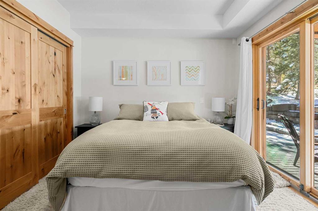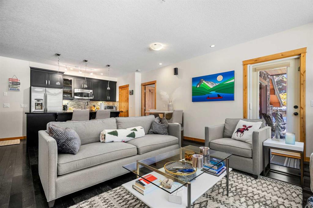 Welcome to Wilderness Ridge, where this beautifully appointed 2-bedroom, 2.5-bath retreat offers the perfect blend of privacy, sunshine, and mountain charm. Backing onto a peaceful treed greenspace, the setting feels tucked away and serene—so much so that the current owners added UV film to the large windows, allowing them to keep the blinds open and enjoy the abundant natural light without sacrificing comfort. Situated on the ground floor, this home provides effortless indoor-outdoor living with easy access to a private rear patio complete with a built-in gas BBQ, ideal for relaxed evenings and entertaining against a quiet natural backdrop.