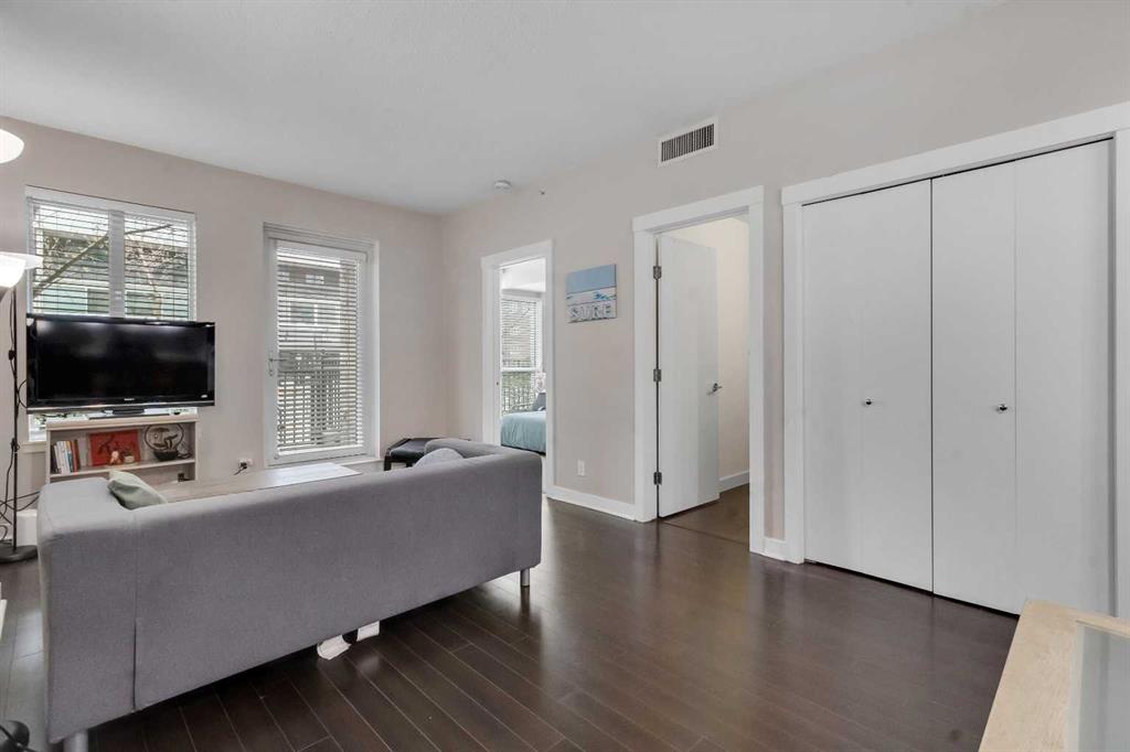 BEST PRICE for CONDO 2 BEDS 1 BATH 767 sf | TITLED UNDERGROUND PARKING | SEPARATE ENTRANCE from STREET | THIS IS A LIVE and WORK UNIT | . Stylish Urban Living with Street-Level Access in the Heart of Beltline. Experience the best of inner-city living in this rare and versatile 2 bedrooms, 1-bathroom ground-floor condo located in the highly sought-after Xenex on 12th building. Step inside to an open-concept floor plan filled with natural light from floor-to-ceiling windows. The modern kitchen is equipped with stainless steel appliances and ample cabinetry — ideal for cooking and entertaining. The unit comes with a spacious primary bedroom features a 4-piece bathroom, plus a good size interior bedroom. Enjoy the convenience of in-suite laundry, underground titled parking, and a separate storage locker.