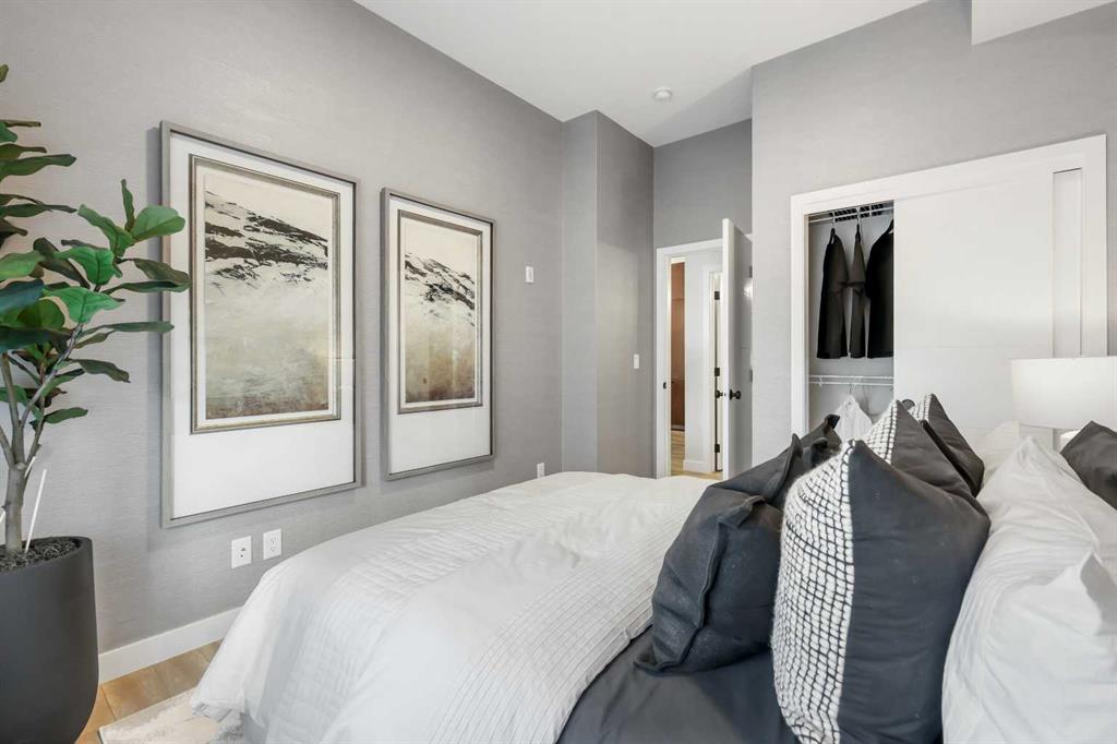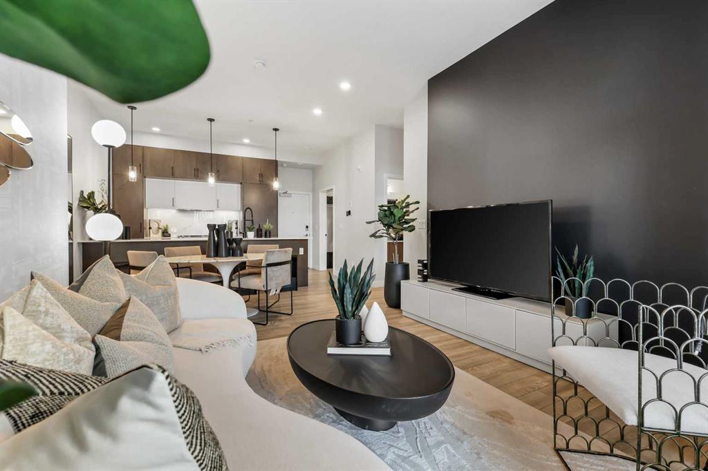 LOVE YOUR LIFESTYLE! Les Jardins by Jayman BUILT next to Quarry Park. Inspired by the grand gardens of France, you will appreciate the lush central garden of Les Jardins. Escape here to connect with Nature while you savor the colorful blooms and vegetation in this gorgeous space. Ideally situated within steps of Quarry Park, you will be more than impressed. Welcome home to 70,000 square feet of community gardens, a stunning Fitness Centre, a Dedicated dog park for your fur baby, and an outstanding OPEN FLOOR PLAN with unbelievable CORE PERFORMANCE. You are invited into a thoughtfully planned 2 Bedroom, 2 Full Bath plus expansive balcony beautiful Condo boasting QUARTZ COUNTERS throughout, SLEEK PANELLED fridge, freezer, and dishwasher, BUILT IN hood fan, electric freestanding range with self clean, and a built in stainless steel microwave. Luxury Vinyl Plank Flooring, High End Fixtures, Smart Home Technology, A/C and your very own in suite WASHER AND DRYER. This beautiful suite offers bright bedrooms with large windows, a storage area with a hanging rack, a large Primary Suite with a walk-through closet and en suite, a spacious dining/living area with sliding doors, an open concept layout between the kitchen, dining, and living room, and ample kitchen and bathroom counter space. STANDARD INCLUSIONS: Solar panels to power common spaces, smart home technology, air conditioning, state-of-the-art fitness center, high-end interior finishings, ample visitor parking, luxurious hallway design, forced air heating and cooling, and window coverings in bedrooms. Offering a lifestyle of easy maintenance where the exterior beauty matches the interior beauty with seamless transition. Les Jardins features central gardens, a walkable lifestyle, maintenance-free living, nature nearby, quick and convenient access, smart and sustainable, fitness at your fingertips, and quick access to Deerfoot Trail and Glenmore Trail. It is located 20 minutes from downtown, minutes from the Bow River and pathway system, and within walking distance to shopping, dining, and amenities. Schedule your appointment today!