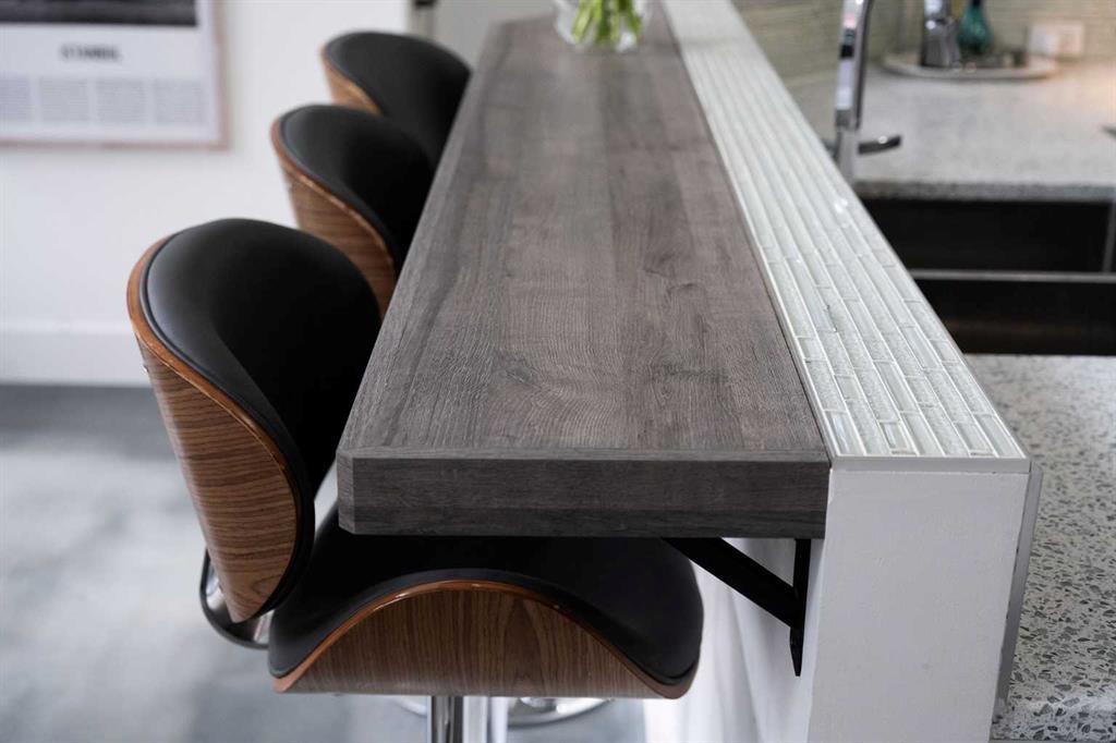 The kitchen features sleek stainless steel appliances, ample prep space, and a new breakfast bar that offers a casual spot for everyday meals or cocktails before heading out to the boutiques, dining, lounges, and fitness studios just steps from your door. Beside the kitchen is the dining area which now features a newly constructed wall with a transom window. Previously this space had doors leading into the flex bedroom, but the new wall provides stronger separation, privacy, and functionality while still allowing natural light to flow through. It creates a more defined dining experience and elevates the entire main floor layout.