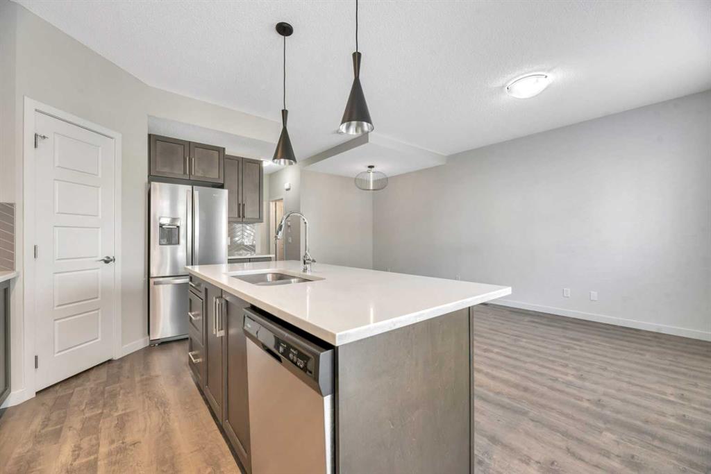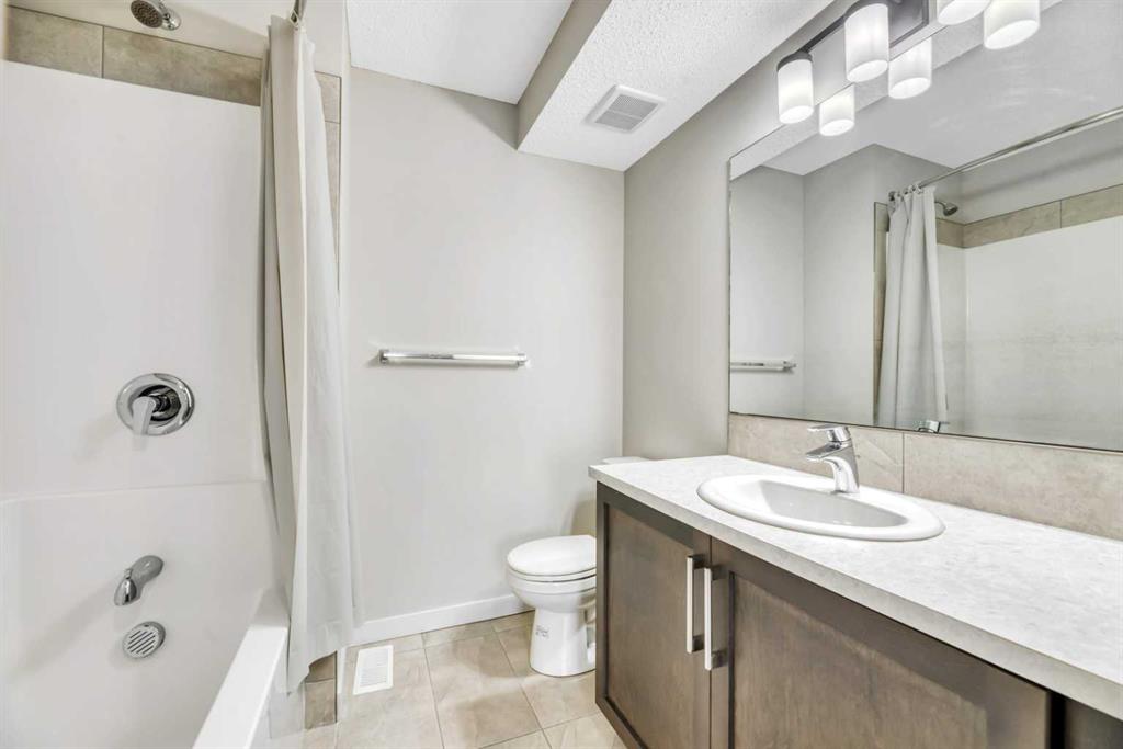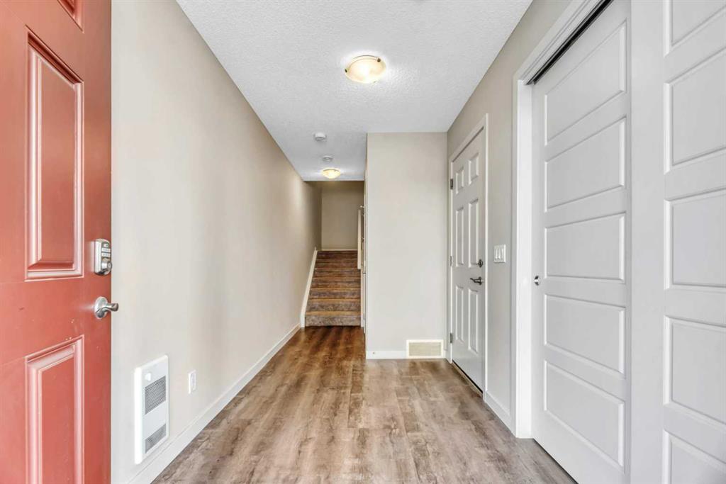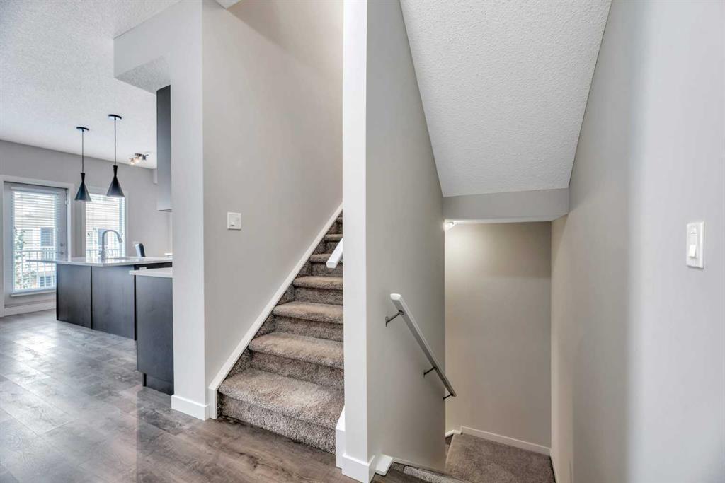 SELLER IS WILLING TO PUT UP TO $2,000 towards the buyers LEGAL FEES! Welcome to 104, 32 Red Embers Parade NE — a stylish and well-maintained three-storey townhome in the vibrant community of Redstone. With nearly 1,279 sq ft (RMS) of above-grade living space, this home offers a bright and functional layout perfect for modern living. The entry level provides a spacious foyer, storage/utility room, and access to the single attached garage. On the main living floor, natural light fills the open-concept kitchen, dining, and living areas. The kitchen showcases stainless steel appliances, full-height cabinetry, a pantry, and ample counter space. The living room flows seamlessly to a private balcony — ideal for morning coffee or evening BBQs. A convenient 2-pc powder room completes this level. Upstairs, find two bedrooms, each with its own full bathroom. The primary suite features a walk-in closet and 4-pc ensuite, while the second bedroom is served by its own 4-pc bath. Upper-floor laundry adds everyday convenience.