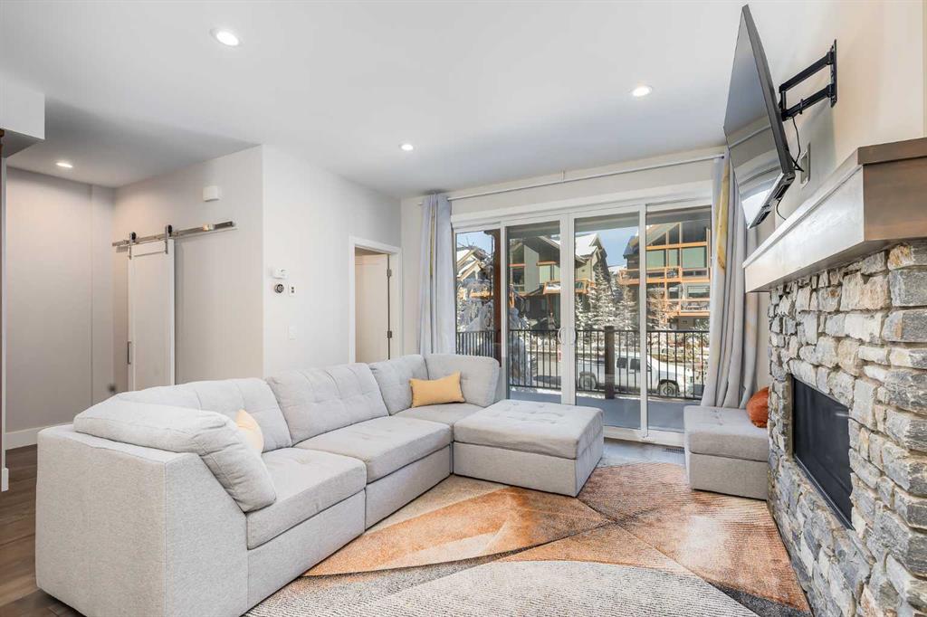 Beautifully maintained three-bedroom townhouse in Stewart Creek featuring over 1,700 sq ft of stylish living space and a double attached garage. Located in sought-after Three Sisters Mountain Village, this bright and inviting home showcases an open-concept main floor with a chef's kitchen offering quartz countertops, modern cabinetry, stainless steel appliances, and recent upgrades including air conditioning, a gas range, and a new refrigerator. The spacious dining area is perfect for entertaining and flows into a comfortable living room with a cozy fireplace and access to a deck boasting breathtaking mountain views. Upstairs you'll find a serene primary bedroom complete with a walk-in closet and ensuite bath, along with two additional bedrooms and another full bathroom. With engineered hardwood floors throughout, abundant natural light, and excellent storage options including a large gear room, this home blends luxury and practicality. The upcoming Gateway at Three Sisters commercial development will soon add nearby shops, grocery stores, and restaurants, enhancing the convenience of this exceptional mountain property.