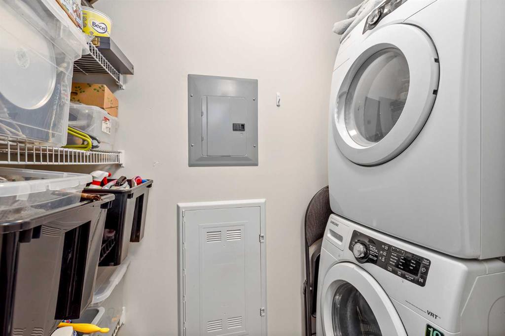For the busy professional or the retired individual desiring the lock and go lifestyle, here is your solution. A ground floor, one bedroom, one bath, well-constructed 837 sq. ft. apartment in the notable and unique Quarry Park area. The private entry conveys you into the foyer where you will immediately note the efficient planning throughout. To the right is the in-suite laundry room along with ample closet space. The flooring is wide-plank warm hardwood and colors are neutral contributing to a feeling of space and calm. The kitchen features tasteful and plentiful white cabinetry, gleaming quartz countertops, tiled backsplash, a gas range with five-burner cooktop, stainless appliances, an island/breakfast bar with built-in microwave and deep double under counter mounted sink. Adjacent to the island is an ideal set up for your computer/office space. Moving into the open area dining room/living room notice the high tray ceilings and the amount of natural light flowing in from the south-facing patio doors. The bedroom is carpeted, has a substantial walk-in closet and a walk-through four-piece tiled bath. The substantial patio is your extra room to enjoy summer entertaining with a convenient gas hookup for BBQ. Additional conveniences include central air, a titled underground heated parking stall, a titled storage locker, car wash, bike room and visitor parking plus common area maintenance. Location is key being close to Deerfoot, Glenmore and Stoney Trails, Sue Higgins Park, the Bow River, Willow Park Golf & Country Club, shopping at nearby South Centre Mall, Calgary Farmers’ Market South, Ikea and Walmart Supercentre. Call for your private viewing and don’t miss out on this exceptional opportunity.