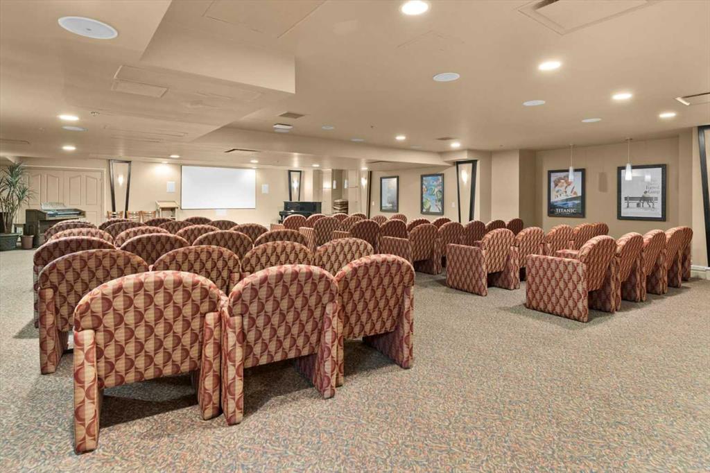 This building includes an impressive range of amenities: a fully equipped gym, a movie theatre, a games room, a library, a social club, and even an on-site hair salon. Access to community amenities is available for just $25 per month.