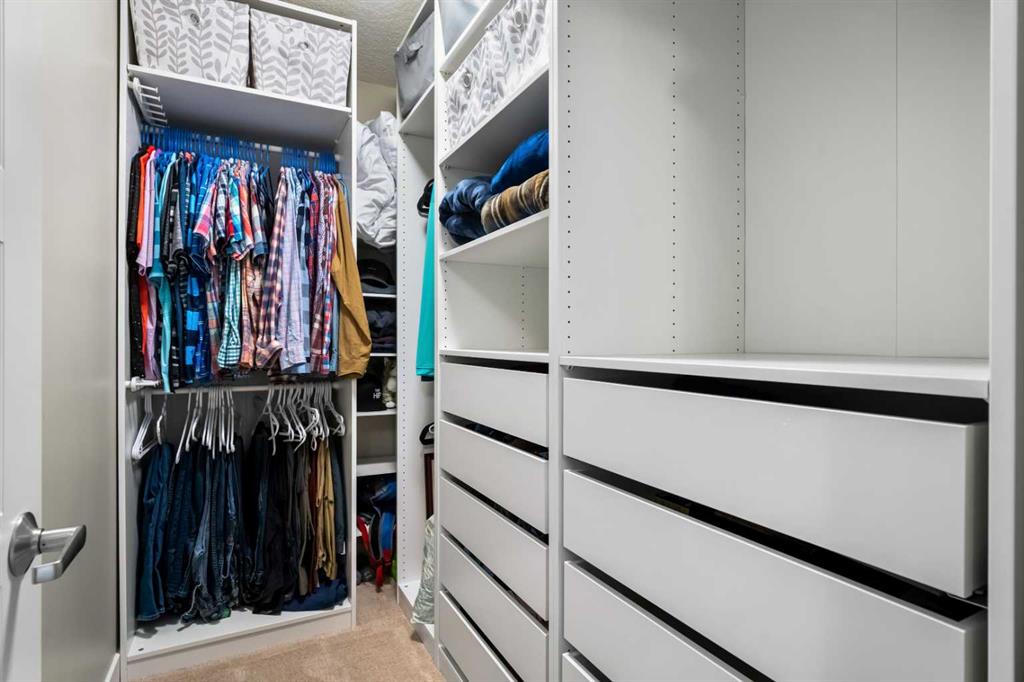 This home includes two spacious bedrooms, highlighted by a comfortable primary retreat with a walk-in closet featuring built-in organizers and a private 4-piece ensuite with a double vanity. A second full bathroom provides added flexibility for guests or shared living. In-unit laundry with built-in cabinetry adds everyday convenience.