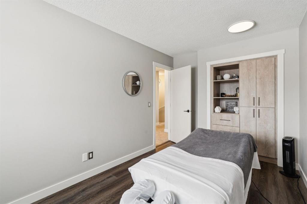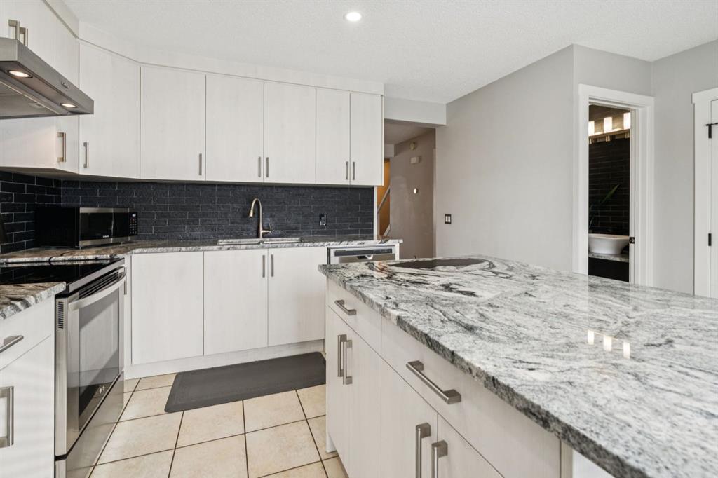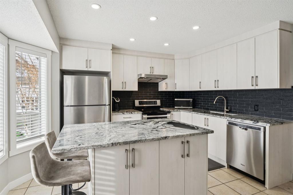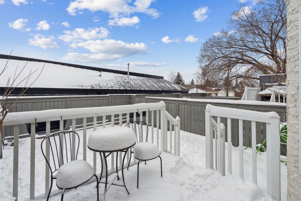 When you walk in, you will immediately take note of the tasteful renovations which include updates to all the doors, trim, paint, and light fixtures. The open design main floor is perfect for entertaining, with its refinished hardwood floors that flow from the bay window in the living room through to the spacious dining room. Don’t forget about the beautifully designed powder room with custom finishes and basin sink. The fully renovated custom kitchen is sure to be the show stopper on this floor! Featuring exquisite black and white granite, stainless appliances, designer Italian stone backsplash, and a massive island that offers storage, counter space, and room for bar stools. A massive double door Pantry adds function and convenience to this truly gourmet kitchen. Another Bay window looks out from the kitchen to the fully fenced back yard, complete with a composite deck. Oh, and you don’t even have to mow the lawn, it's included in your low condo fee of only $320.77. The upper floor has 3 Bedrooms with two fully renovated bathrooms. The extremely large primary suite houses a huge closet that spans the entire length of the wall, with custom built in shelves and racks. One of the bedrooms is currently being used as a massage studio and features designer built in cabinetry! The lower level offers an additional 549 SF of space that is currently being used as a home gym and laundry room. There are endless possibilities to develop it into additional living space, whether you are wanting another bedroom and bathroom, large rec room, or even a home theatre!
