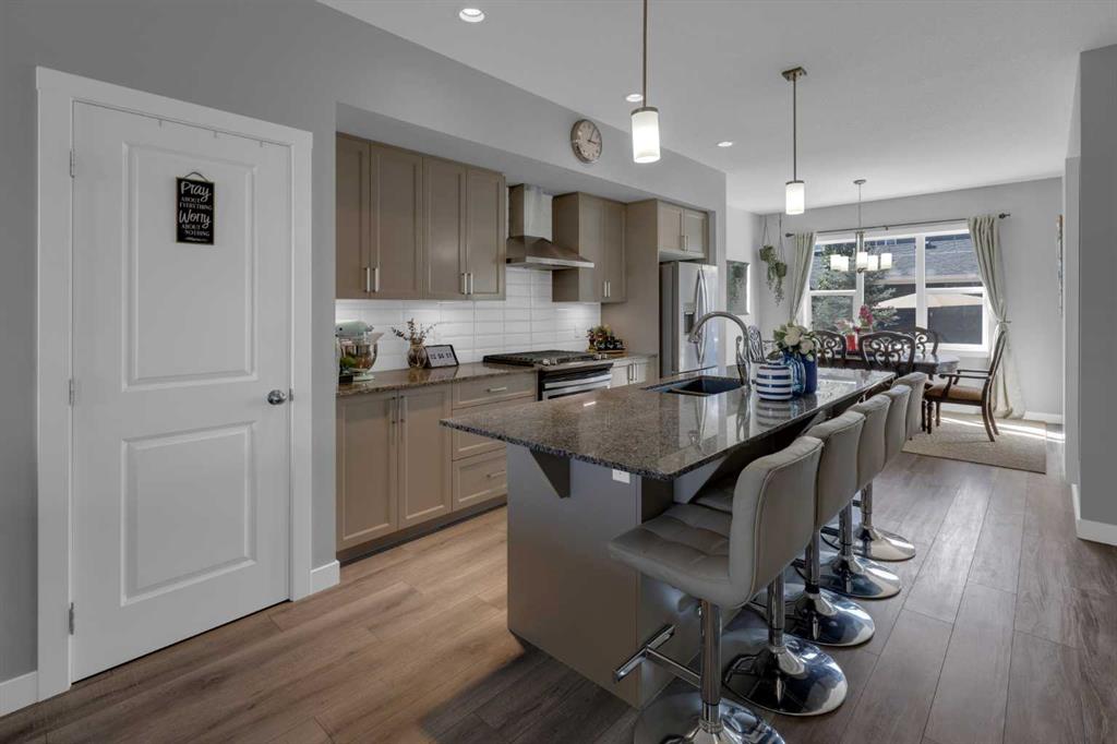 Look no further, you just found your new home! This well-maintained corner townhome is located in the heart of the community of Midtown. This exceptional property enjoys a setting of peaceful walking paths that meander around the tranquil pond. You will also enjoy the extended greenspace directly in front of the property perfect for the kids to run and play. This home offers plenty of space for the growing family with 3 bedrooms on the upper floor and a fourth in the basement. The bedrooms are accompanied by 3.5 bathrooms allowing the busy family to easily get ready for their day. The chef in the family will enjoy the well-appointed centralized kitchen with a large island accented with granite counter tops. To put the cherry on top the kitchen has stainless steel appliances which includes a gas range! The layout is perfect for entertaining with the living room on one side of the kitchen and the dining area on the other with more seating at the island for large gatherings. In the basement you will find it fully finished with a rec-room perfect for movie nights. This home being a corner unit offers extra windows allowing plenty of natural light. If all this wasn't already enough… This home also offers a double detached garage plus an additional gravel parking pad that could be used for RV storage. This property will not disappoint?, book your showing today!