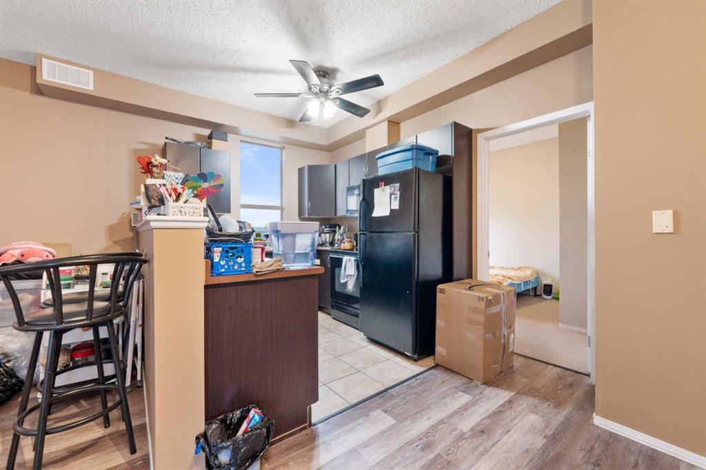 Perched on the 11th floor with sweeping, unobstructed views of the River Valley and Rocky Mountains, this bright corner unit combines comfort, functionality, and an unbeatable location. Featuring an open-concept layout, the home offers laminate flooring in the living and dining areas, creating a fresh and modern feel throughout the main living space. The kitchen is well-appointed with generous cabinetry, ample counter space, and a sunny window that floods the space with natural light. Two spacious bedrooms provide flexible living options, while a 4-piece bathroom with soaker tub, insuite laundry, and a titled indoor parking stall add everyday convenience. Residents of The Vantage enjoy access to a fitness centre, bike storage, and concierge services, all within walking distance to shopping, restaurants, the river pathway system, and downtown. Whether you're a first-time buyer, urban professional, or savvy investor, this unit offers exceptional value and incredible views in one of the city’s most desirable locations.