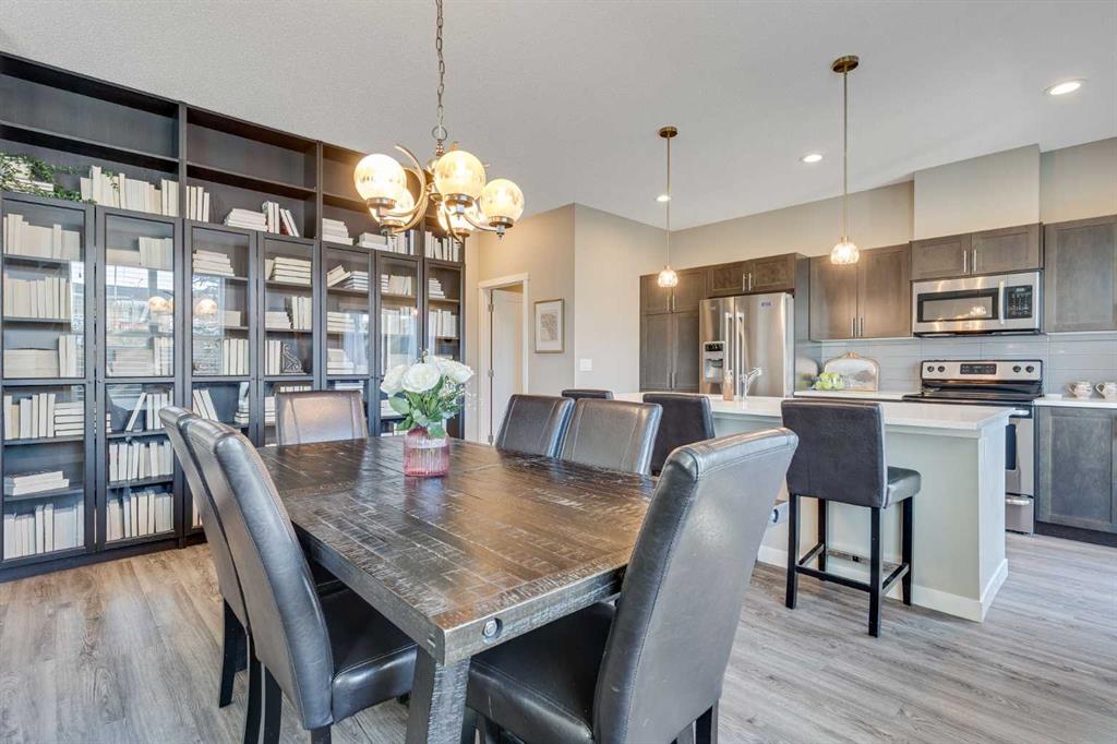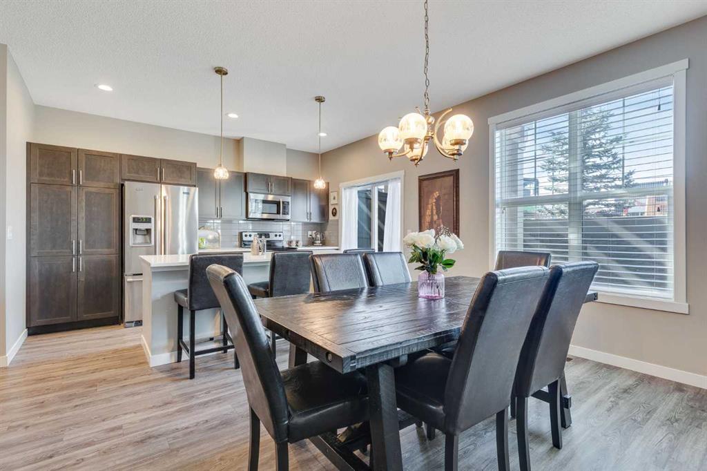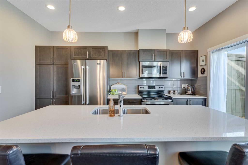 OPEN HOUSES: Saturday, November 8, 1:00-3:00pm & Sunday, November 9 from 12:00-2:00pm. This charming townhouse combines style, comfort & functionality with a layout designed for everyday living. Step into a bright, open-concept main floor where a spacious living room with a custom built-in library wall flows seamlessly into the dining area. The kitchen is both beautiful & practical, featuring rich walnut-stained cabinetry, quartz countertops, a breakfast bar & easy-care vinyl plank flooring, with sliding patio doors leading to your private outdoor space, perfect for summer BBQs or evening relaxation. A convenient half bath completes the main level. Upstairs, discover three well-appointed bedrooms, including a primary suite with its own walk-in closet & private ensuite, while the additional bedrooms share a full bath. The fully finished basement extends the living space with a cozy family room, fourth bedroom, full bathroom & laundry area, making it ideal for growing families or guests alike. Complete with a single attached garage plus parking on the driveway for one more vehicle, and backing onto a lush green space with trees, and benches that invite you to slow down & enjoy nature right outside your door. The vibrant community of Nolan Hill is known for its scenic ravines, parks, playgrounds & miles of walking paths. With easy access to shopping centres, schools, restaurants & major roadways, this property offers the perfect blend of comfort, convenience & community living.