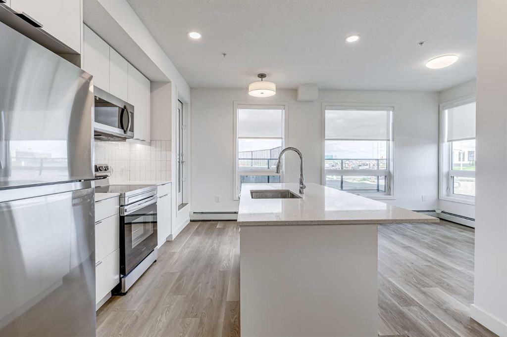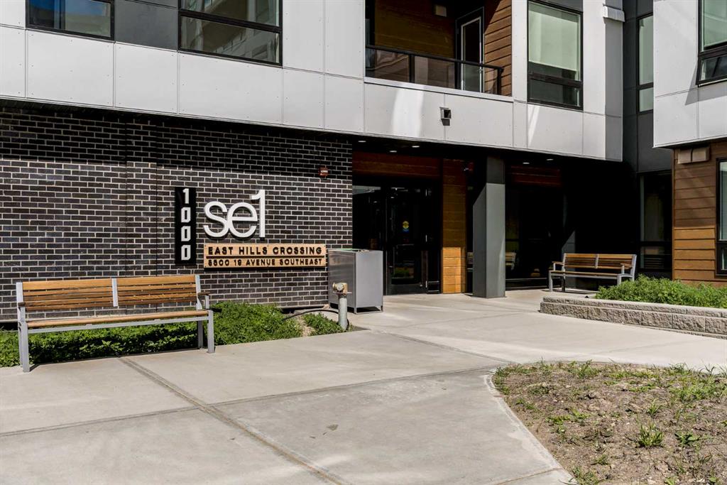 Welcome to this spacious west-facing main floor corner unit, featuring one of the largest decks available (7.2 x 31 ft)—perfect for outdoor entertaining or enjoying your morning coffee in the sun. Inside, the well-designed layout includes a generous primary suite complete with a beautiful 3-piece ensuite, a second bedroom, and a versatile den ideal for a home office. The open-concept living room flows seamlessly into the kitchen, which boasts stunning brand new stainless steel appliances and sleek quartz countertops. A second 4-piece bathroom adds to the unit’s convenience. Additional highlights include in-suite laundry, a titled underground parking stall, and a titled storage locker. Located just across from East Hills Shopping Centre and close to parks, transit, and with quick access to Stoney Trail, this home offers a perfect blend of comfort, lifestyle, and accessibility. In a pet-friendly building with low condo fees, this is an ideal opportunity for first-time buyers, downsizers, or investors looking to be part of Calgary’s vibrant and growing east side. This one has it all—location, layout, and abundant natural light.