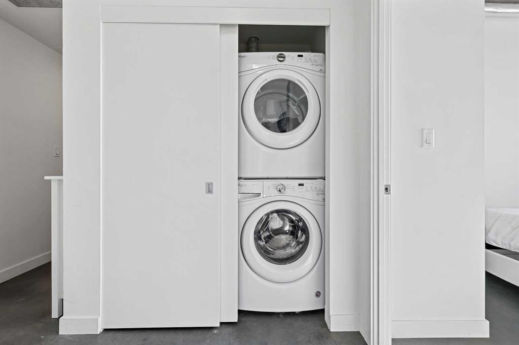Experience modern city living at its best in this stylish 2-bedroom, 1-bath corner unit at INK by Battistella, perfectly positioned in Calgary’s vibrant East Village. Whether you’re a first-time buyer, a savvy investor, or a downsizer, this home delivers the perfect blend of bold design, intelligent functionality and unbeatable location. Perched on the 11th floor and quietly set at the end of the hall, this pet-friendly, short-term rental approved condo showcases an industrial-chic aesthetic with polished concrete floors, exposed ductwork, and soaring 9.5’ windows that fill the space with natural light. The sleek kitchen features quartz countertops, high-gloss cabinetry, and stainless-steel appliances, opening seamlessly into a bright, open living area that’s perfect for entertaining or relaxing. Two well-separated bedrooms offer versatility for a roommate setup, guest room, or home office, while the modern 4-piece bath adds a touch of everyday luxury. Step out onto your wrap-around balcony to take in breathtaking south-facing views of the Calgary Tower, Stampede Grounds, and downtown skyline—an ideal backdrop for morning coffee, evening sunsets, and Stampede fireworks. Additional perks include in-suite laundry, titled underground parking, storage locker, and impressive building amenities such as a rooftop patio, penthouse recreation room, bike storage, visitor parking, and a pet wash station. From your doorstep, enjoy easy access to the C-Train, Studio Bell, Superstore, cafés, parks, the Saddledome, and the Bow River pathways. This is your opportunity to live or invest in one of Calgary’s most dynamic and walkable urban communities.