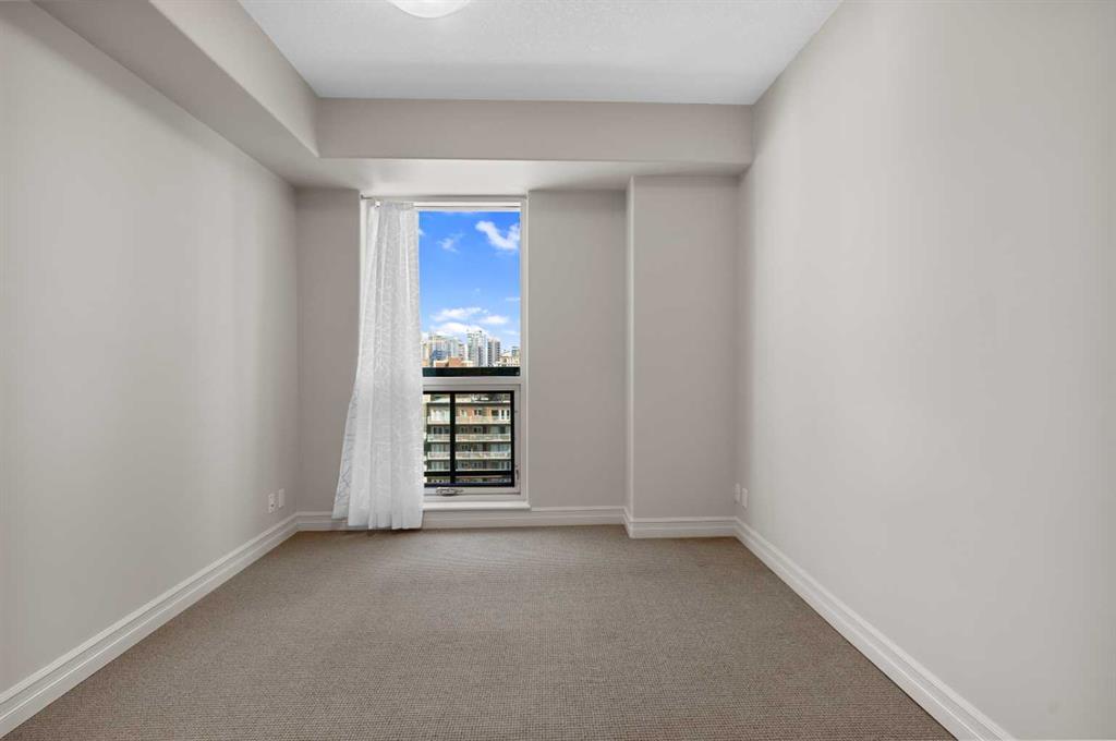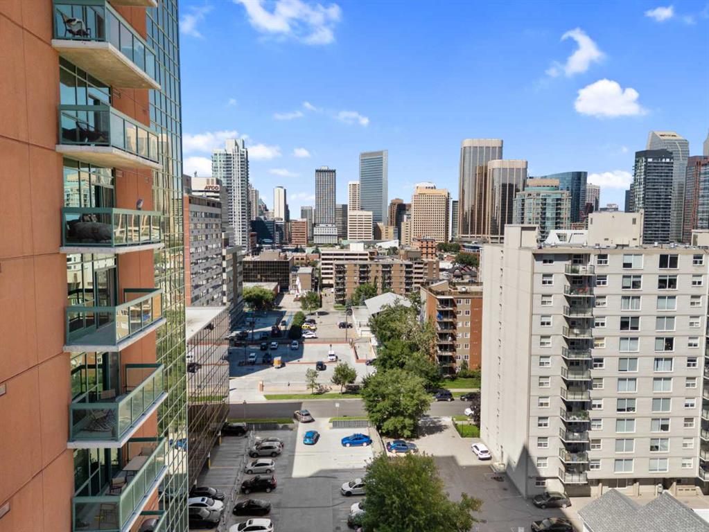 ELEVATED URBAN LIVING in the ICONIC EMERALD STONE! Welcome to a rare opportunity in the heart of Calgary’s vibrant Beltline! This stunning 1 bedroom + DEN, 1 bathroom condo soars high on the 11th floor of the coveted Emerald Stone residence, a building renowned for its striking architecture, unbeatable location, and exceptional lifestyle. Step inside and immediately feel the spaciousness of this thoughtfully designed unit, featuring an open-concept layout, 9-foot ceilings, and floor-to-ceiling east-facing patio windows that flood the space with natural light and the panoramic city views are simply breathtaking. Whether you’re entertaining guests or working from home, this unit checks every box. Highlights include a stylish kitchen with ample storage and modern appliances, a bonus DEN perfect for a home office or creative nook, electric fireplace, central A/C, spacious balcony with a gas hookup for BBQs, in-suite laundry, titled underground heated parking stall, and an assigned storage cage. The primary bedroom is generously sized and features a smart built-in closet system, while the large 4-piece bathroom is conveniently located just across the hall for added privacy. Emerald Stone offers residents exclusive access to upscale amenities including a fully equipped fitness center, owners lounge, full-time concierge, and a warm & welcoming lobby area. This well-managed building rarely sees one-bedroom units come available, making this an exceptionally rare find. Located just steps from some of Calgary’s best cafes, restaurants, boutiques, gyms, and nightlife, you’ll love the walkable lifestyle and energetic vibe of the Beltline. Don’t miss your chance to own in one of downtown’s most sought-after buildings. Book your private tour today and fall in love with everything this home and neighborhood have to offer. VIRTUAL TOUR AVAILABLE!