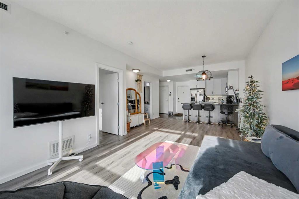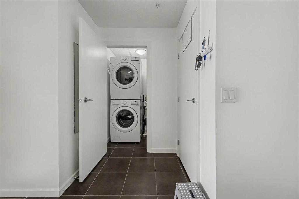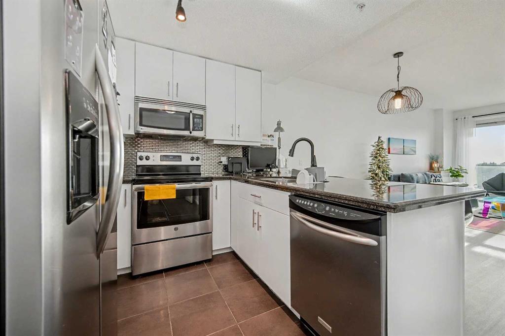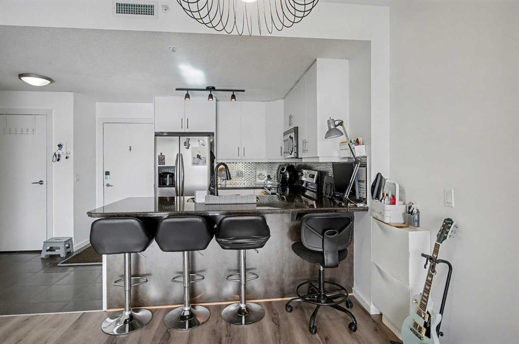 Urban Living at Its Best! Welcome to Vetro, where modern style meets unbeatable convenience. The open-concept layout features a modern kitchen with granite countertops, stainless steel appliances, a breakfast bar, and a striking tile backsplash. The bright living and dining space flows seamlessly, providing plenty of room to relax or entertain. The spacious bedroom includes a walk-through closet that leads into an ensuite bath, creating a private retreat. This unit comes with a titled underground stall and an assigned storage locker. The Vetro building is designed for elevated living, featuring a concierge service and night time security for ultimate peace of mind. Wellness enthusiasts will appreciate the expansive two-level fitness center, complete with a hot tub, steam showers, and an inviting games and social lounge with a pool table and cozy fireplace. Host movie nights in the private theatre room or relax in the outdoor courtyard. Convenience is at your doorstep with Shoppers Drug Mart and Canada Post located at the base of the building, and Sunterra Market and the BMO Centre just a short walk away. The Stampede Grounds, New Scotia Place Event Centre, Saddledome, LRT transit, and the vibrant shops and restaurants of 17th Avenue are all within easy reach. Lindsay Park and the MNP Community & Sports Centre are nearby, supporting an active, connected lifestyle. Whether you're a young professional, savvy investor, empty nester, or first-time buyer seeking to own instead of rent, this condo delivers an exceptional blend of luxury, convenience, and an unbeatable location.