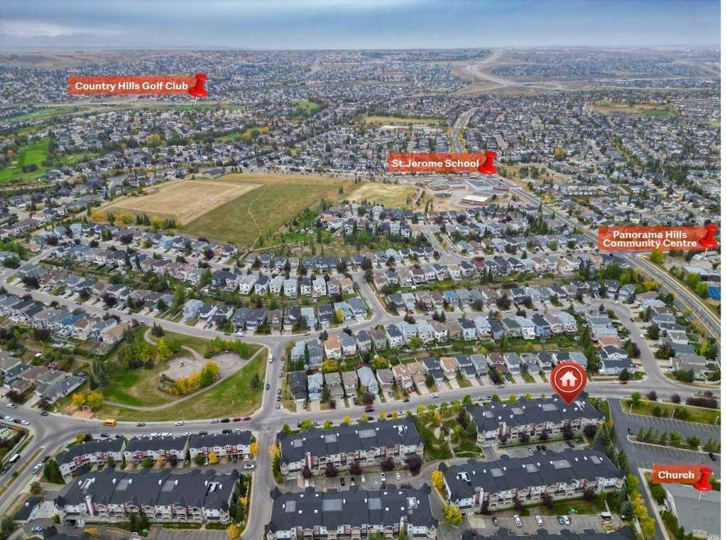 Welcome to this incredible main floor unit in the heart of Panorama Hills! Perfect for first-time homebuyers, empty nesters looking to downsize or investors. This home combines convenience, comfort, and accessibility. Featuring 2 spacious bedrooms, 2 full bathrooms, and in-suite laundry, this unit also offers a den/home office for those who require a dedicated workspace. There’s no carpeting in the condo, making it easy to maintain. Step inside to the immaculate kitchen with new refrigerator and new hood fan, ample cabinet storage, and a raised breakfast bar for casual dining. All walls were painted 2 years ago, and the light fixtures are new. The living room opens through glass sliding doors to a cozy patio with a BBQ gas line installed and complemented by new blinds. The primary bedroom includes a walk-in closet leading to a private ensuite, creating a relaxing retreat. A titled parking stall and storage locker are conveniently located on the heated underground secured parkade level. Situated in the established community of Panorama Hills, you’ll enjoy an unbeatable location with shopping, restaurants, groceries, movie theater, schools, public transit, recreation centers, parks, ponds and even a golf course—all just minutes away.
