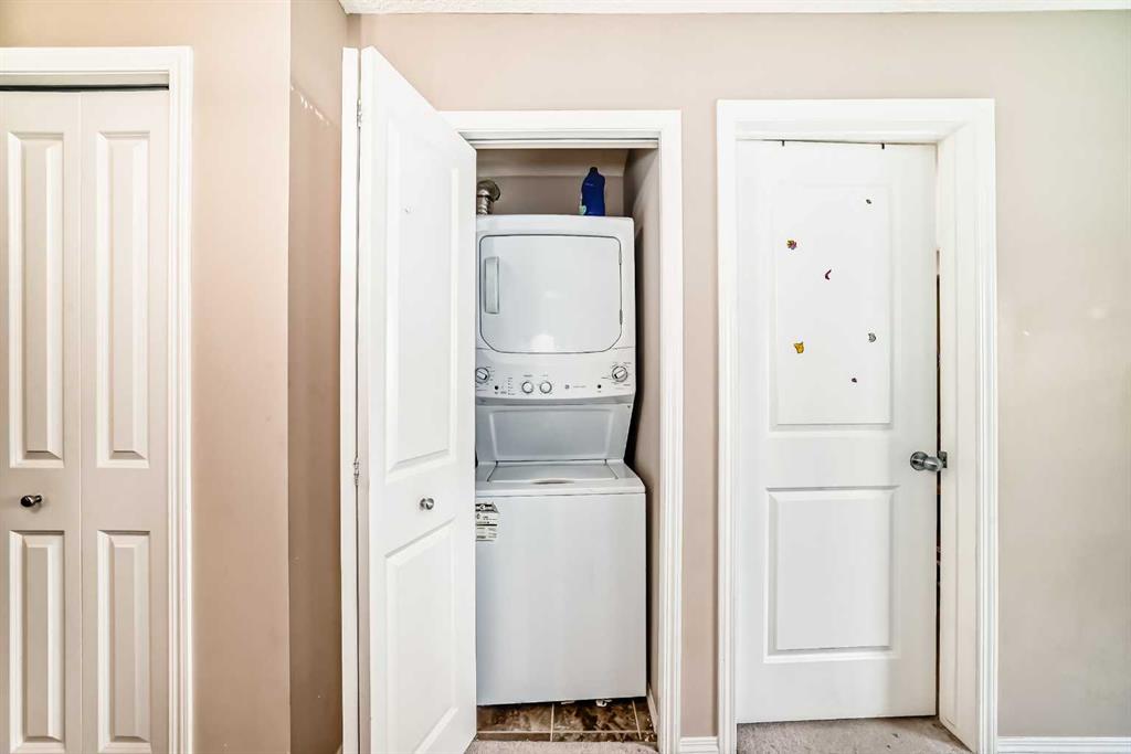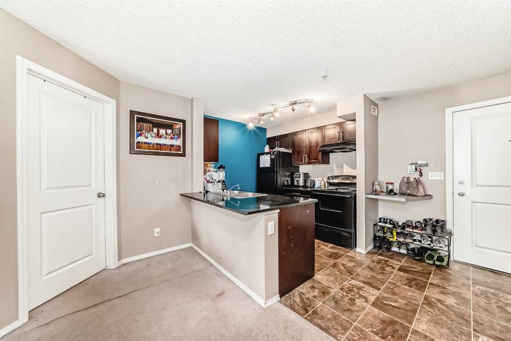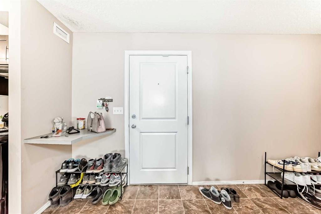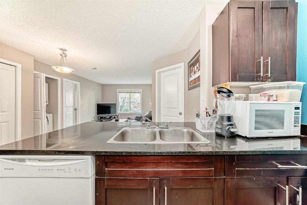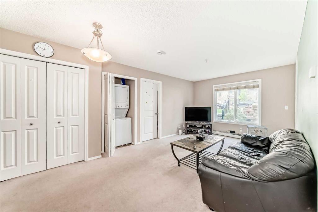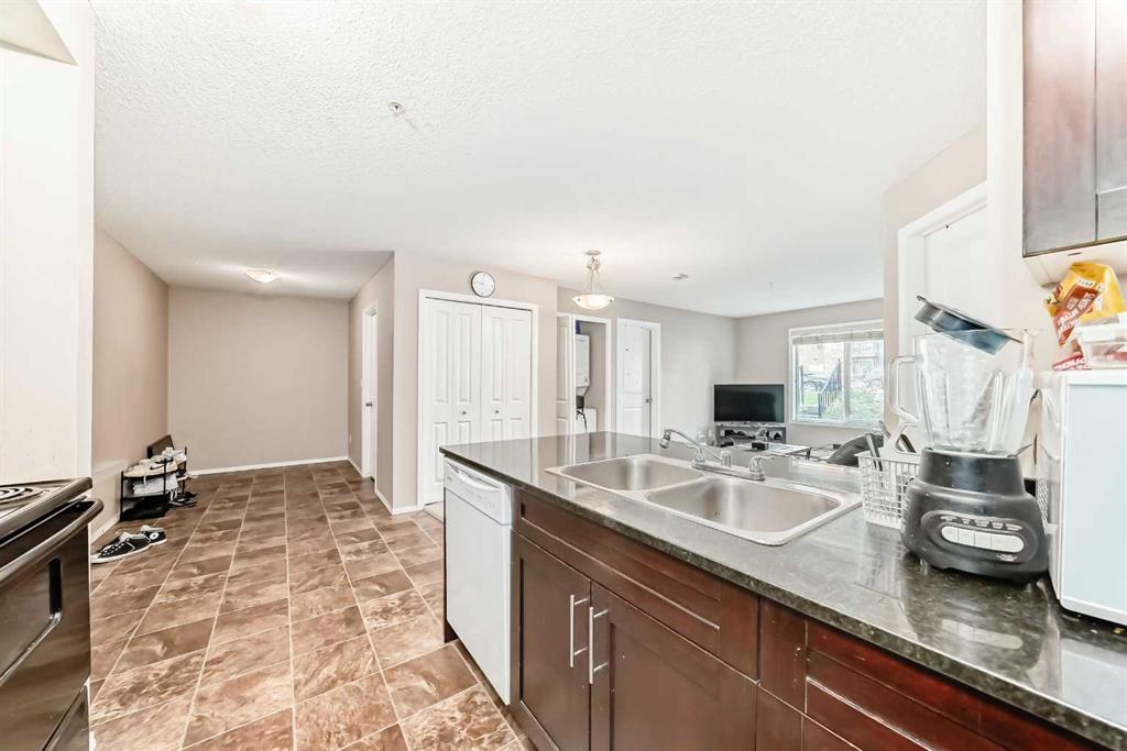 Ground floor cozy 2 bedroom plus Den and 2 baths is nestled in the family-friendly neighborhood of Kincora. Situated right smack in the midst of all kinds of amenities - transit routes, shopping centers, schools, recreational facilities, walk and bike paths. This is urban living at its best!. From the spacious entrance you are ushered into the open floor concept of living room and dining area. To the left of the entrance is good size Den and the laundry room. Then there is the 4pce bathroom and a good size bedroom. To the right as you enter is good size kitchen with plenty of cabinets and counter top space, also the primary/master bedroom complete with walk in closet and 4pce ensuite. The porch off the living room has good view of the complex and neighborhood for those summer days hang out. Condo fees cover both heat and water, offering additional convenience. With easy access to Stoney Trail, Shaganappi Trail, and Beddington Trail, you'll enjoy a hassle-free commute and excellent connectivity to everything you need.