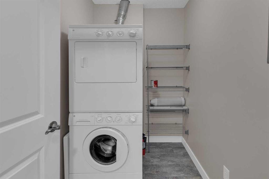 The bedroom offers generous space and ample natural light. Additional highlights include titled underground parking, a secure storage cage, and in-suite laundry for added convenience. Whether you’re a first-time buyer, investor, or down-sizer, this home offers exceptional value and lifestyle in one of Cochrane’s most desirable communities, this wonderful complex has full fitness centre included and guest suite for nominal fee. Located within walking distance to the beautiful Cochrane Ranch path system as well as a short walk to restaurants, coffee shop/bakery, dentist, liquor store, gas station, convenience store, parks, play grounds, schools & other amenities. Pet policy: one cat or one dog 18 lbs max, condo fees include heat, gas, water, sewer & trash.
