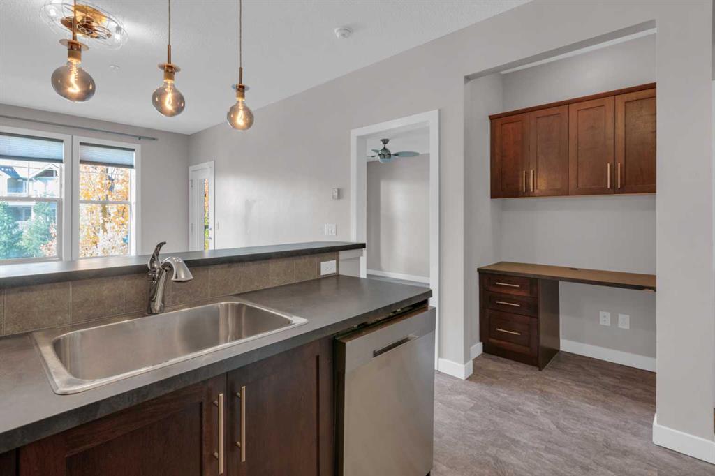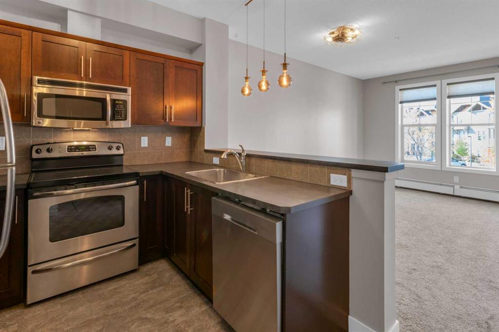 Titled, underground heated parking! This one bed, one bath condo combines the comfort of single level living with everyday convenience in the heart of Sunset Ridge. Inside, you’ll find an open-concept layout designed for both function and style. The kitchen features ample cabinetry, and a breakfast bar ideal for casual dining. The cozy living area opens to a private west facing balcony, perfect for enjoying morning coffee or evening sunsets against a Rocky Mountain backdrop.