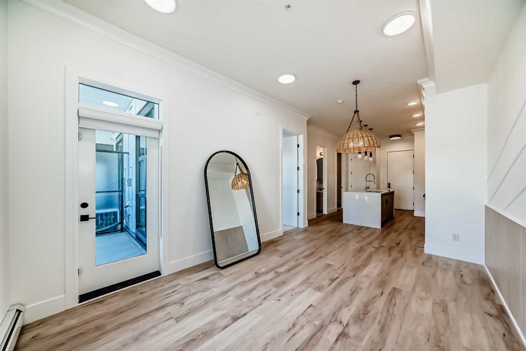 Step into modern luxury with this brand-new 1 bedroom + den 603 square feet home located on the ground floor of the award-winning University District. From the moment you walk in, you’ll notice the attention to detail—sleek quartz countertops, panel-ready appliances, soft-close cabinetry, and designer finishes that make every space feel elevated. The thoughtful floor plan includes a bright entrance, a contemporary kitchen with dining area, a spacious living room with oversized windows, and direct access to your private patio—perfect for morning coffee or winding down in the evening. The primary bedroom features a walk-in closet and a 4-piece bath completes the floor plan of this new and never-occupied home. A versatile den offers endless possibilities, whether as a home office, study space, or guest room. Added conveniences include in-suite laundry, underground parking, and a dedicated storage unit. Outside your door, you’ll enjoy a vibrant, walkable community with boutique shops, cafés, restaurants, parks, and green spaces. The building itself offers exclusive brand-new amenities designed to complement your lifestyle. With quick access to the University of Calgary, Market Mall, Foothills Medical Centre, and endless conveniences, this home offers the perfect blend of luxury and location. This is more than a home—it’s your gateway to elevated living in one of Calgary’s most sought-after communities.