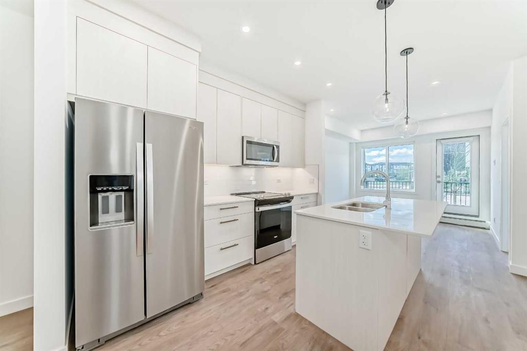 PRIVATE ENTRY ON GROUND LEVEL. BRAND NEW! Step into modern living with this charming 2-bedroom, 1-bathroom first-floor condo in Chestermere. At 627 sq. ft., this thoughtfully designed unit offers a bright, open-concept layout, perfect for relaxed living and entertaining. Enjoy a contemporary kitchen featuring sleek stainless steel appliances, full-height cabinetry, soft-close drawers, quartz countertops, and an eat-up bar. The primary bedroom includes a spacious walk-through closet leading to a classy 4-piece bathroom, while the second bedroom provides flexible space for guests or a home office. This unit includes a private ground floor balcony for morning coffee or evening relaxation. Residents can also take advantage of building amenities like a gym, common lounge for parties, a bike room, and a pet spa. Located just minutes from Chestermere Lake, you'll have easy access to scenic pathways, parks, shopping, and all the amenities this growing community has to offer. This stunning home is ready for you, whether you're a first-time buyer, an investor, or looking to downsize in style.