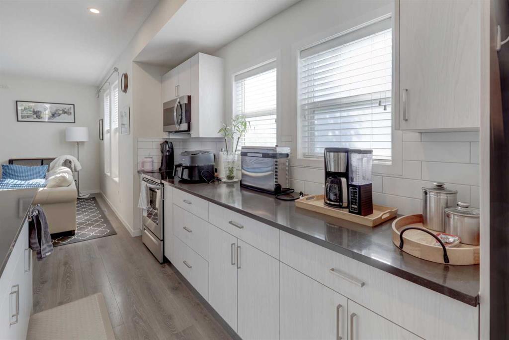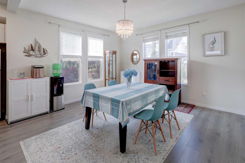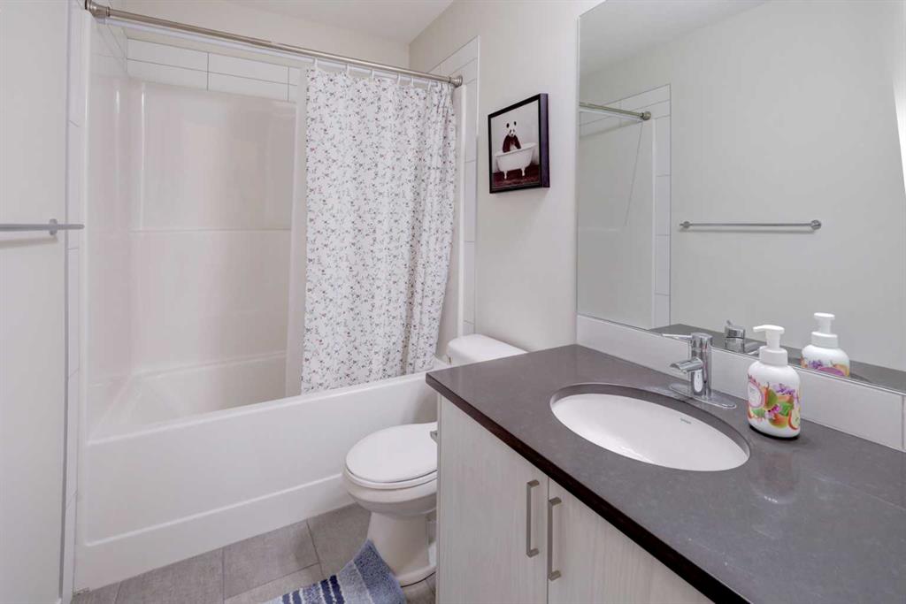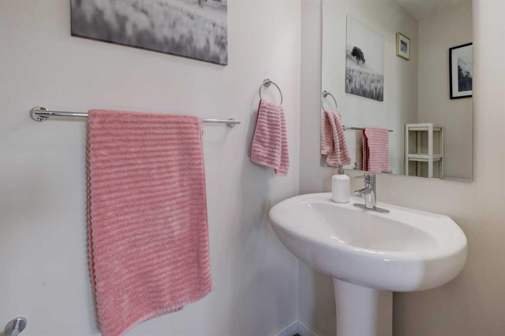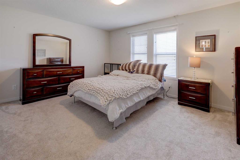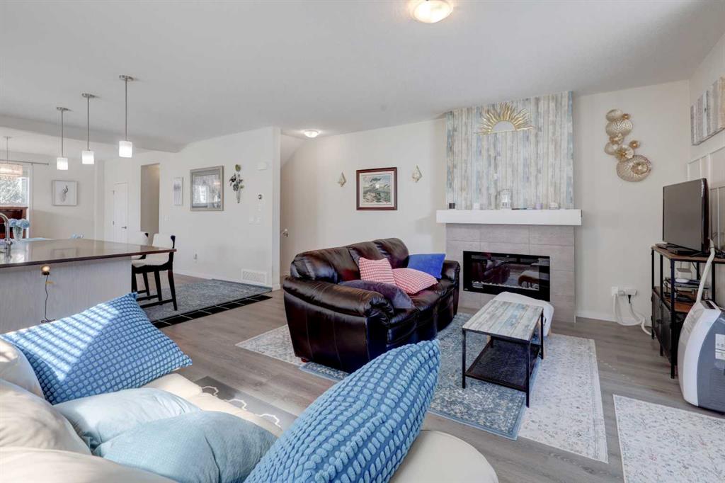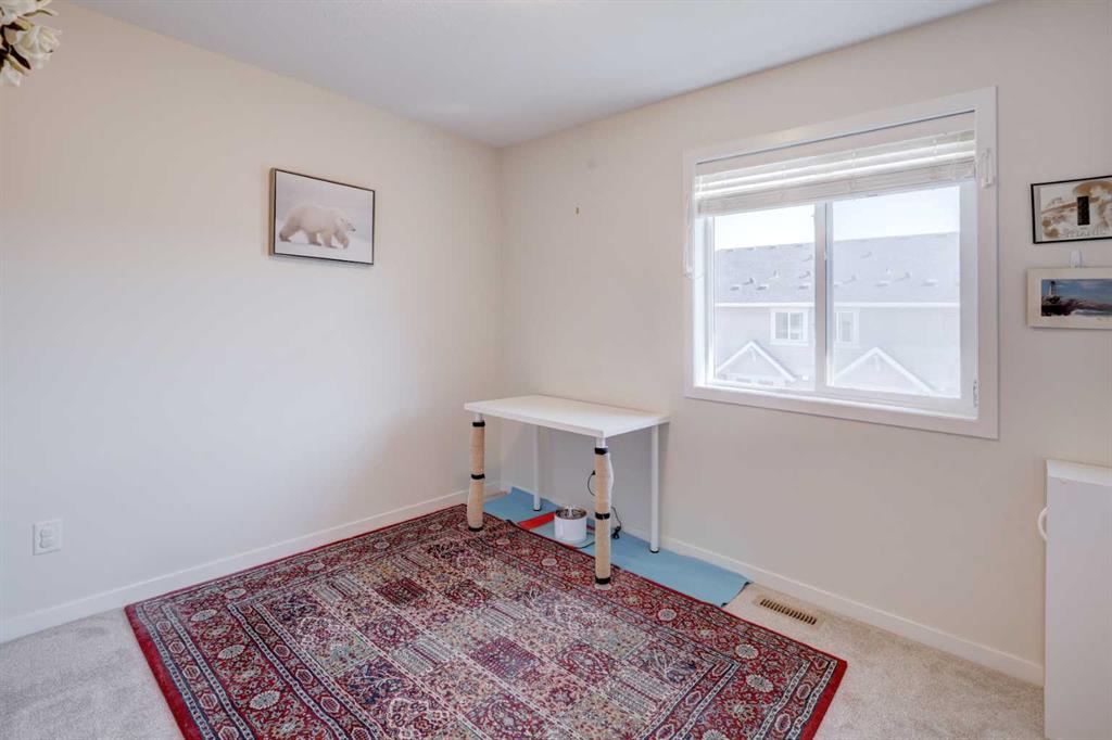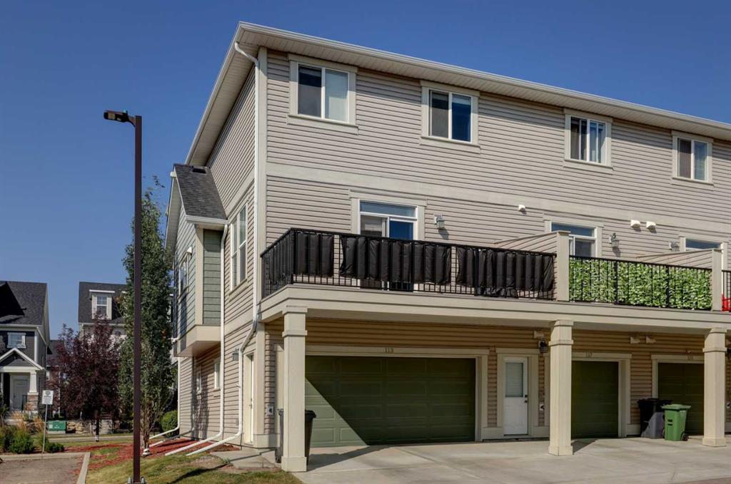 EXCEPTIONAL END UNIT in Airdrie's sought after community of South Point. This stunning 3-level townhouse offers over 2000 sq. ft. of contemporary living with a floorplan designed for both comfort and functionality. The main level features a spacious flex room, perfect for a home office, gym or rec room. Upstairs, the heart of the home is a chef inspired kitchen, showcasing a large island, quartz countertops, and plenty of cabinetry to meet all your storage needs. The open- concept layout flows seamlessly into the dining room and living areas, ideal for entertaining. The primary bedroom is a private retreat with dual sinks in the spa-like ensuite. Laundry is conveniently located on the upper level, making daily living effortless. Situated in an amenity-rich neighbourhood, this home is close to schools and everyday essentials-providing the perfect balance of lifestyle and location.