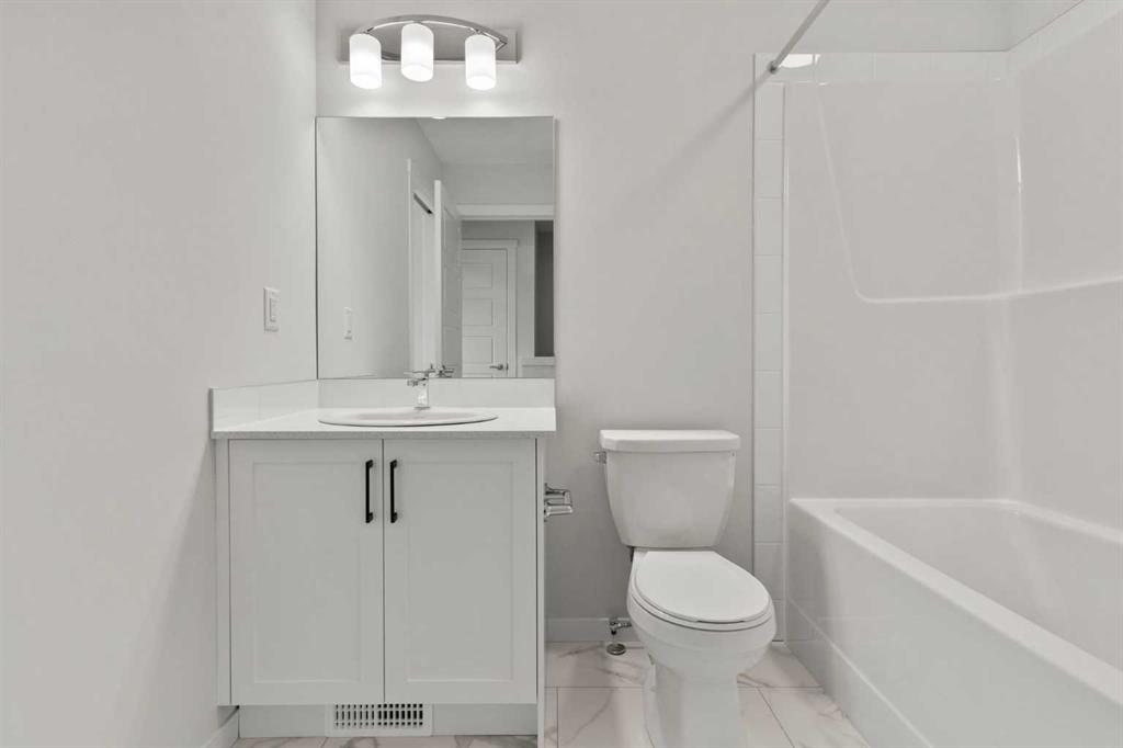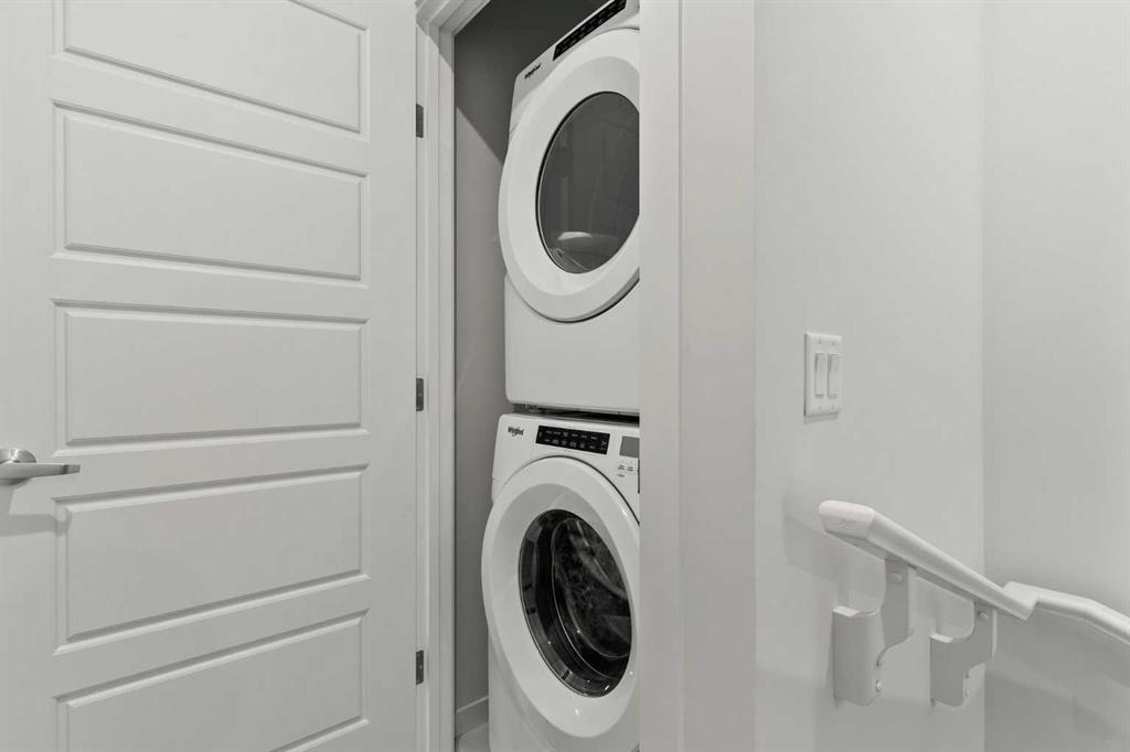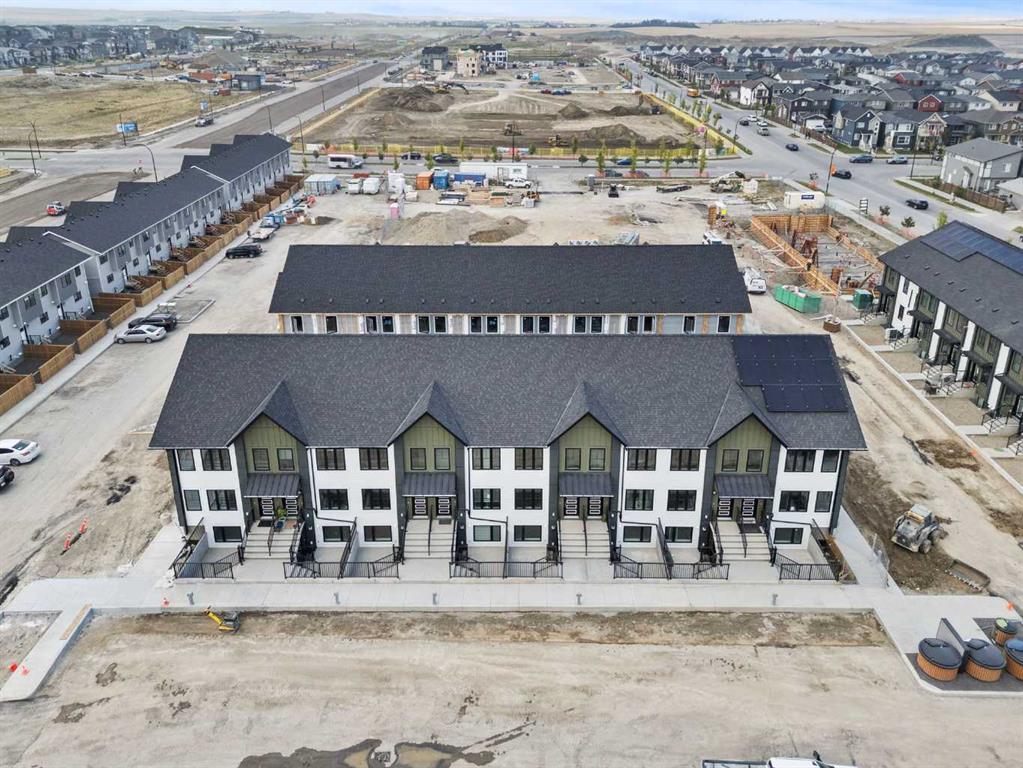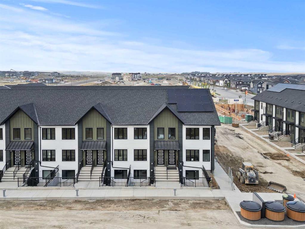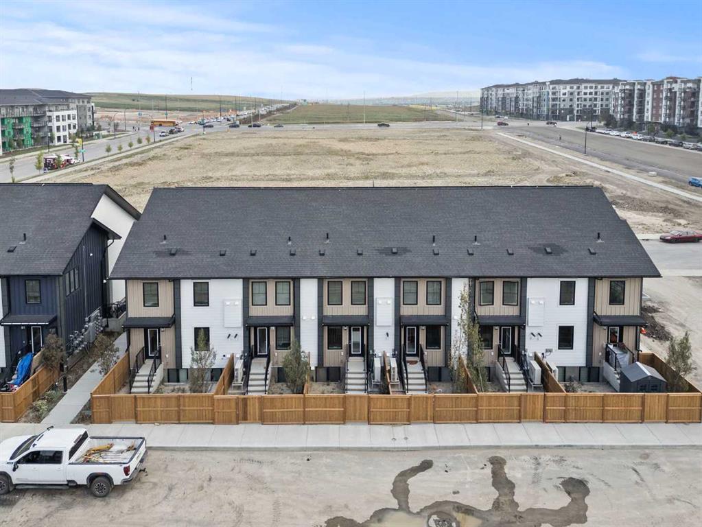 Welcome to the Ambrosia at ZEN Livingston – a stylish, energy-efficient townhome built by a NET ZERO builder! Offering 1,095 sq ft of thoughtfully designed living space, this 2 BED, 2.5 bath home features TRIPLE-PANE windows, advanced insulation, and a rough-in for solar panels – all contributing to lower utility bills and year-round comfort. The OPEN CONCEPT main floor showcases Cicero Luxury VINYL PLANK flooring, pot lights with knock-down ceilings, and a BRIGHT LIVING AND DINING area that flows into your BACKYARD that is FULLY FENCED, perfect for those with kids, pets or wanting to enjoy some privacy — complete with BBQ GAS LINE, landscaping, and irrigation. The modern kitchen includes white ice QUARTZ COUNTERTOPS and a 6-piece Whirlpool appliance package. Upstairs, you'll find two spacious bedrooms including a primary suite with an ensuite bathroom, upstairs laundry and an additional 4-pc bath. Enjoy HARDIE BOARD siding (hail/fire-resistant), and be part of a vibrant community just steps from the Livingston Hub with splash park, rink, courts & more! Quick access to Stoney Trail (3 min), YYC Airport (13 min), and CrossIron Mills (11 min). AIRBNB friendly! Photos are representative. Visit the showhome at 56 Livingston Parade NE.