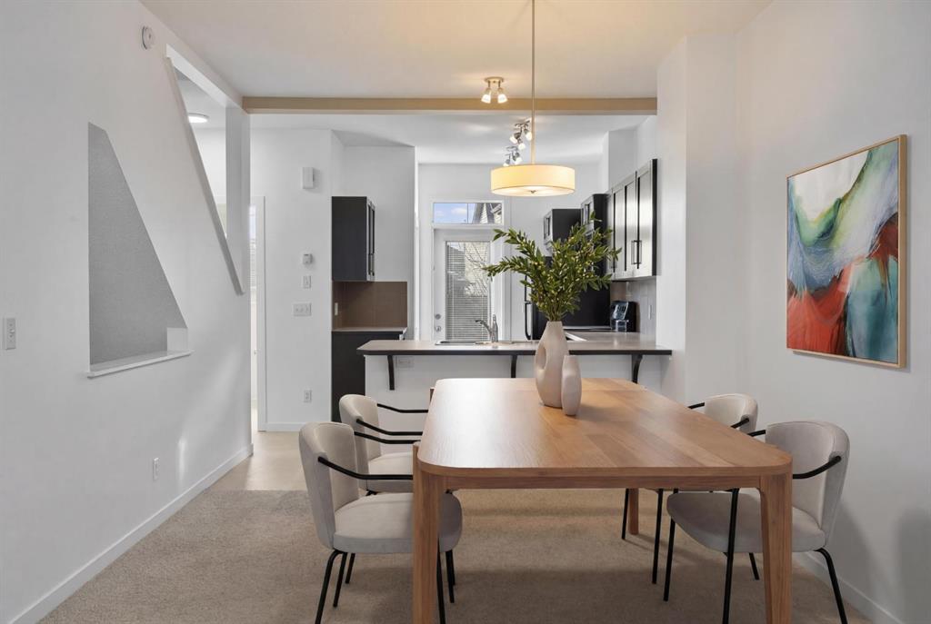 Open House Saturday December 6th 12 PM- 2PM! Step into this bright and inviting 2-bedroom, 2.5-bathroom townhome, perfectly situated in a quiet location within the complex and offering true move-in ready convenience. The main floor features an open, well-planned layout with a spacious living area and a comfortable dining space. The kitchen provides plenty of cabinetry, generous counter space, and a peninsula with seating — ideal for everyday living. From here, enjoy direct access to the sunny south-facing balcony, a great spot to relax or enjoy your morning coffee. A convenient half bath completes this level. Upstairs, both bedrooms are well-sized and each includes its own ensuite bathroom for added privacy. Primary features a large walk in closet. The laundry room is conveniently located on this level and comes equipped with front-load washer and dryer for easy day-to-day living. Recently painted in a clean, neutral palette and exceptionally well maintained, the home offers a fresh, modern feel throughout. An added bonus is the attached single tandem garage, offering secure parking for two vehicles, extra storage space, and year-round convenience. The location is outstanding: minutes from major routes including Deerfoot Trail and Stoney Trail, 52nd Street — making commuting and daily errands incredibly convenient. You’re also close to the nearby pond, athletic park, and all the shopping, dining, and amenities along 130th Avenue. With its move-in ready condition, quiet setting, and unbeatable accessibility, this townhome offers fantastic value. Connect with your favourite Realtor today to schedule your private viewing.