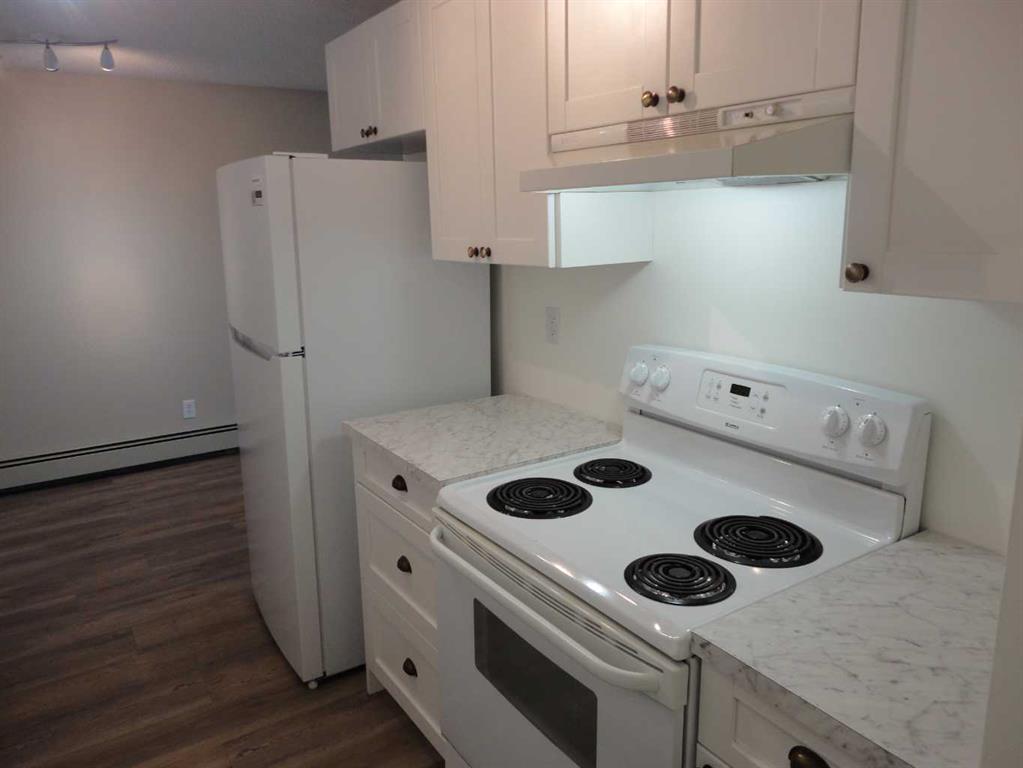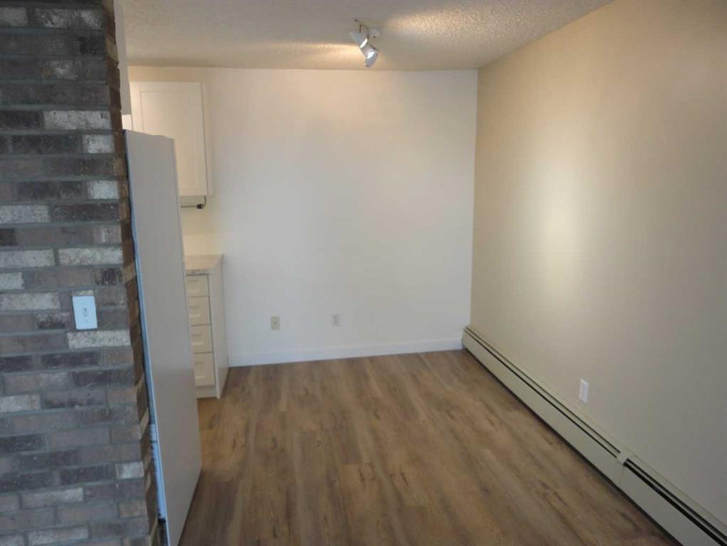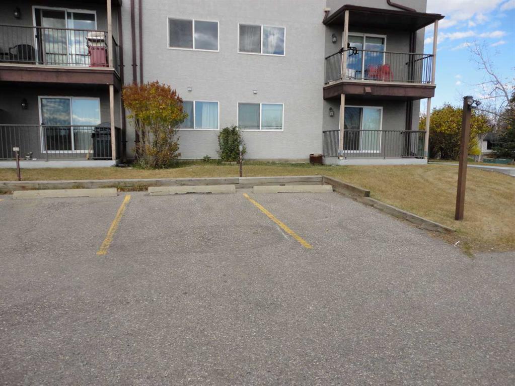 This 614 sq. ft. main floor (no stairs to climb) one-bedroom apartment-style condominium is ideally situated in a quiet residential community, backing onto a school field with southern exposure and unobstructed rear views. The property features a series of recent upgrades including new vinyl flooring with enhanced underlay, fresh paint, new doors, partially updated lower kitchen cabinets, a new refrigerator, window coverings, countertops, toilet, shelving storage racks, and freshly painted door trim. As a corner unit, it benefits from an additional window between the living and dining areas, ensuring ample natural light throughout. The interior includes a split brick feature wall, a spacious living room with patio doors leading to a balcony, and both the bedroom and living room overlook a green space. The dining area adjoins the galley kitchen, while an updated four-piece bathroom is conveniently located off the main entryway. Additional amenities include in-suite storage and two surface parking stalls. This residence offers an excellent opportunity for young couples, seniors not wanting stairs or single professionals seeking comfort and convenience in a well-maintained setting. Walking distance to Starbucks, Safeway, Dollarama and many other convenient amenities. Also located close to the North end of Okotoks for closer access to Calgary for the commuter.