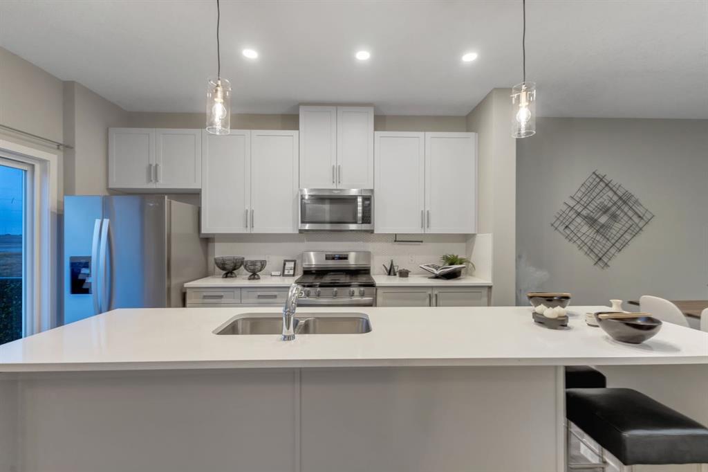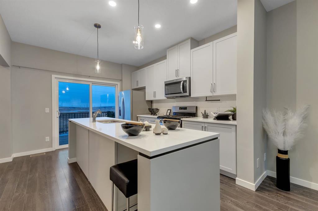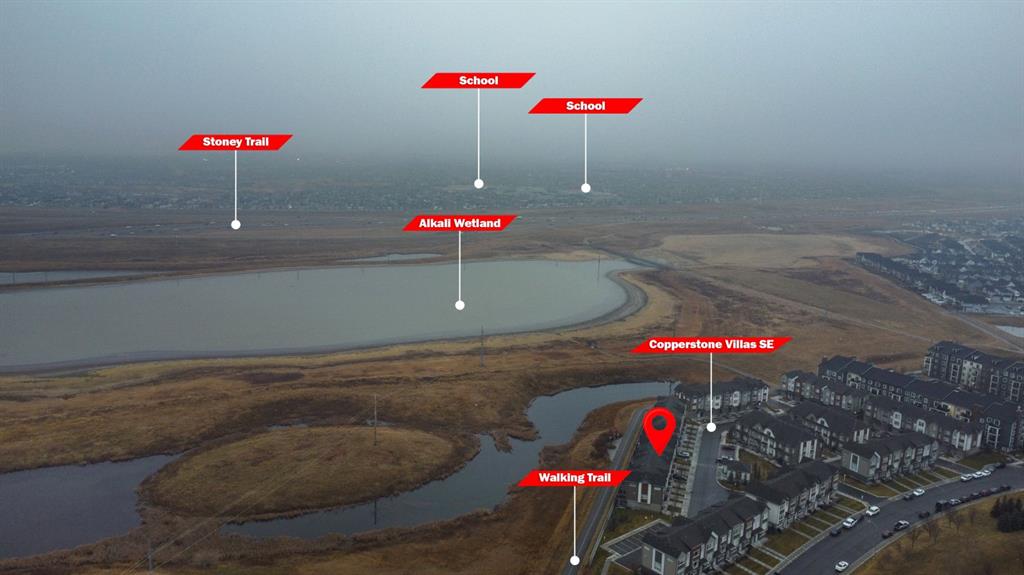 *****OPEN HOUSE TODAY FROM 2PM-4PM*****Welcome to this beautiful 2-bedroom, 2.5-bathroom townhome in the quiet and private Copperfield Chalet community at 116 Copperstone Villas SE. With modern finishes, a functional layout, and rare natural wetland views, this home offers the perfect blend of comfort, convenience, and lifestyle. Step inside to a bright, open-concept main level where large windows and thoughtful design make the space feel warm, inviting, and spacious. The heart of the home is the stunning chef-inspired kitchen, complete with white cabinetry, quartz countertops, stainless steel appliances, a large centre island, and seamless access to your private deck—ideal for morning coffee, evening BBQs, or simply taking in the serene surroundings. The main floor also features generous living and dining areas, creating an effortless flow for both everyday living and entertaining. A convenient 2-piece powder room completes this level. Upstairs, you’ll find two spacious primary-style bedrooms, each with its own walk-in closet and private ensuite, offering outstanding comfort and privacy—perfect for roommates, guests, or a growing family. The lower level adds even more versatility with a dedicated tech/flex room, ideal for a home office, workout area, or creative space. An attached garage provides both convenience and additional storage. What truly sets this home apart is its setting: backing onto Copperfield’s beautiful walking trails and protected Alkali wetlands, offering a peaceful buffer from traffic and a natural, retreat-like atmosphere right outside your door. Playgrounds, green spaces, schools, and everyday amenities are all just steps away, making this location as practical as it is picturesque. This move-in-ready townhome is an excellent match for first-time buyers, young professionals, investors, or anyone seeking low-maintenance living without compromising on style or surroundings. Don’t miss your chance to experience Copperfield Chalet living—book your private showing today!
