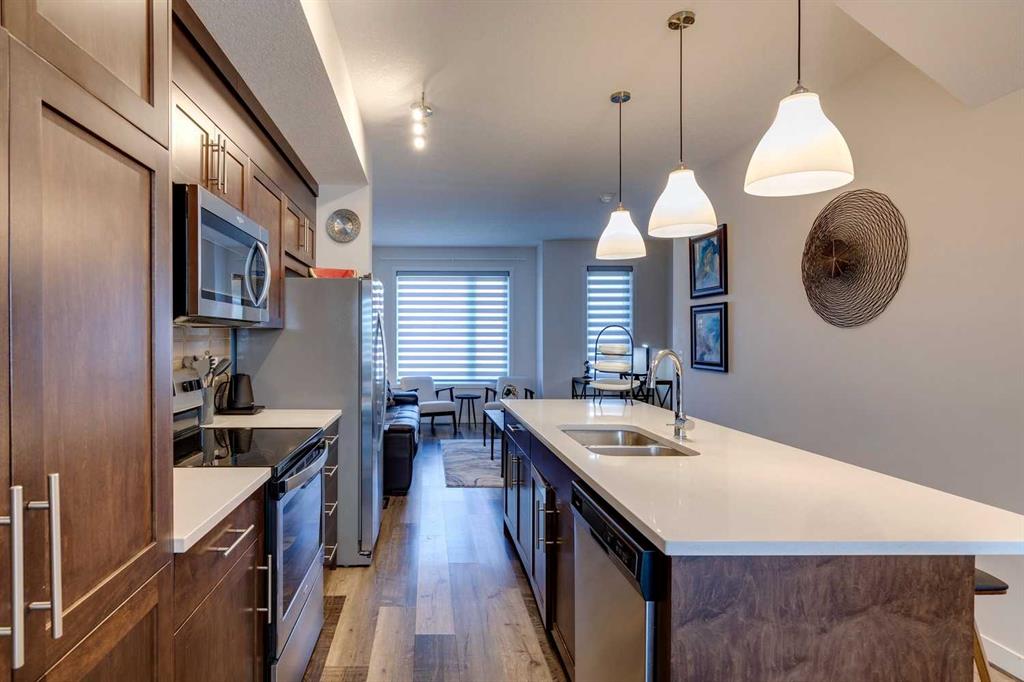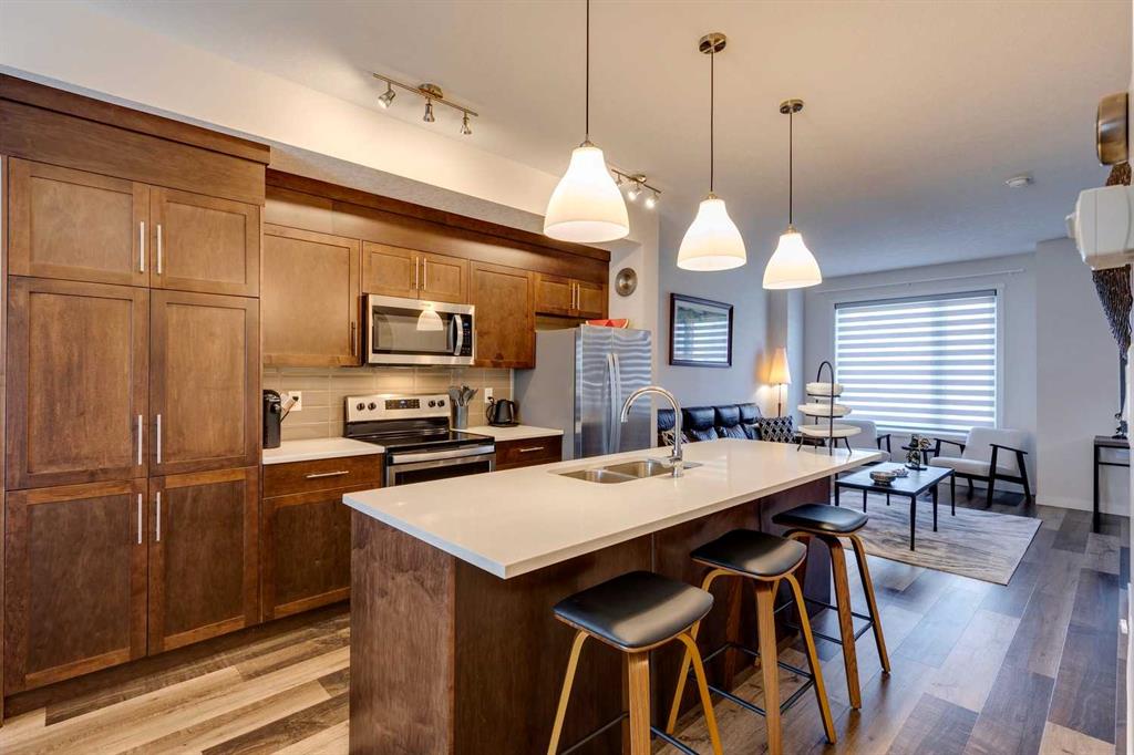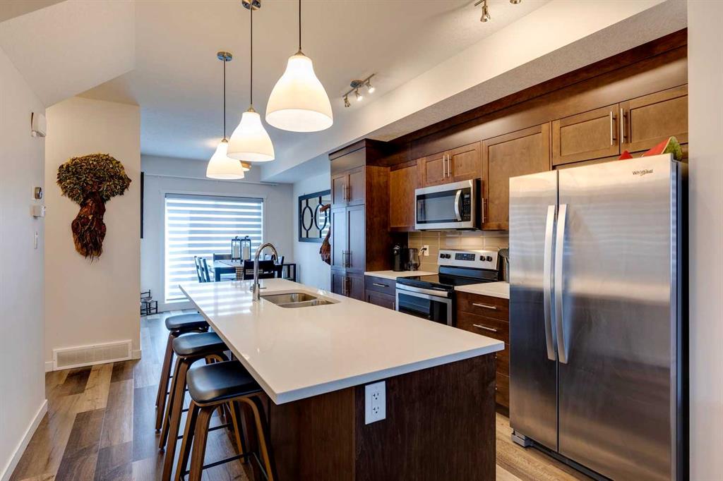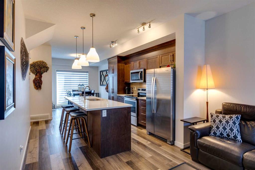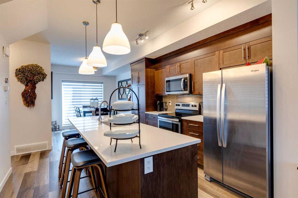**Priced Reduced!*** Welcome home to this appointed townhouse in coveted Shawnee Slopes. This executive townhouse is in the heart of the development, nestled on a quiet street! You cannot get a better location if you enjoy nature walks as Fish Creek Park is a block away! If ease of transportation is your goal, Fish Creek LRT Station is 5 minutes from your door. Walking distance to parks, tennis courts, Pickle ball courts, shops, and more to open in the fall! Also, there are 3 daycare's within walking distance! Any other amenities you can think of are just a short distance away. This beautifully crafted townhome features clean lines and modern touches throughout. The main level features an open floor plan with a dining area which is naturally lighted by 2 large patio doors leading to a balcony for enjoying your morning coffee. A/C to keep you cool on those hot Calgary days! The kitchen has plenty of cabinets, an island with quartz countertops that could seat 4 comfortably. The upgraded, stainless appliances and a large pantry finish the kitchen. Beyond the kitchen is the living room which is spacious and flooded with light from the front windows, with Levolor banded Shades throughout ($4,000 Dollar Value) On the upper level there are two master suites each with their own ensuites and walk-in closets. This home has luxury vinyl plank flooring on both levels. The laundry is also thoughtfully located on the upper level. Park your 2 vehicles in the tandem garage which is 37.3 feet long with room for visitors to park on your drive! Call to view this beautiful townhome with your favourite Realtor today!