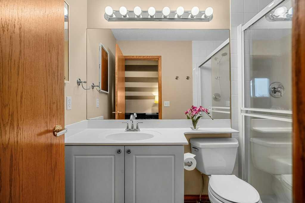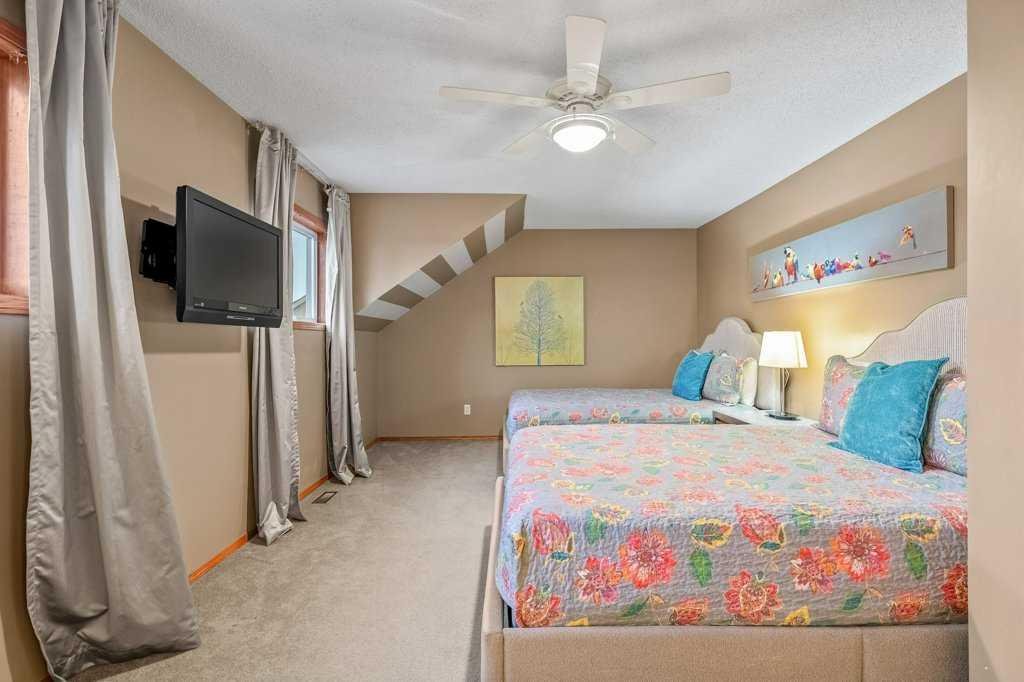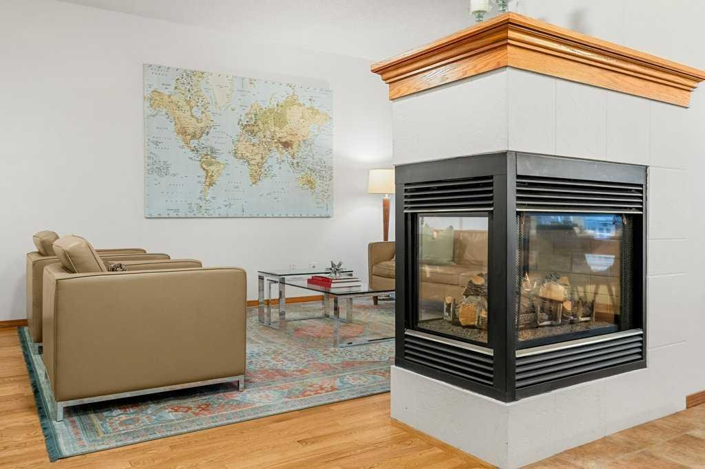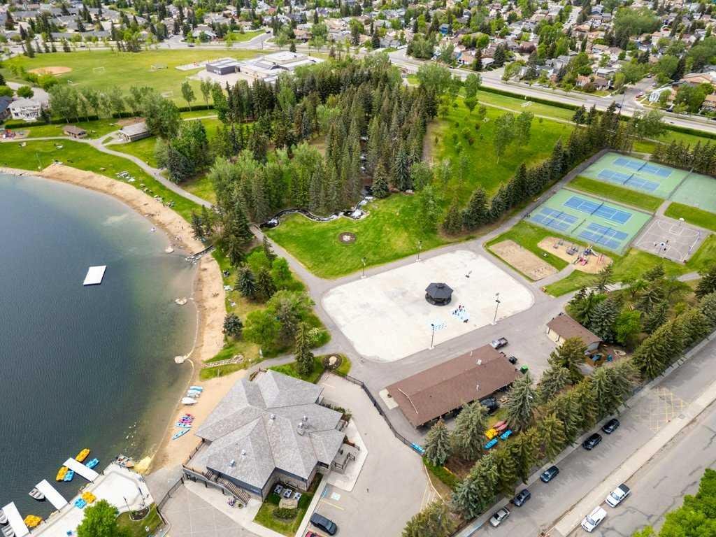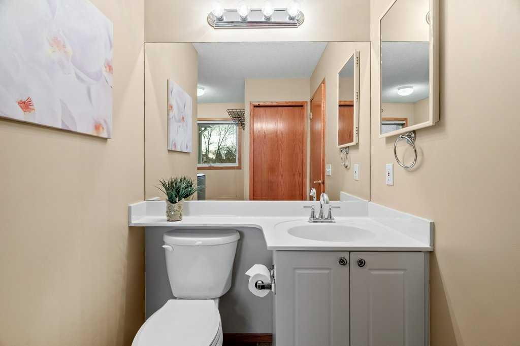 Largest unit in the complex with over 1,700 sq. ft. above grade (just under 2400 sq.ft total developed)of living space! This rare and spacious 4-bedroom, 4-bathroom townhome is located in the desirable lake community of Sundance, offering lake access and close proximity to transit, all levels of schooling, shopping, and multiple parks. Features include a double attached front garage with driveway parking for two additional vehicles, 9 ft ceilings on the main floor, an open-concept layout, and a cozy three-sided fireplace. The home has been well maintained with numerous updates, central A/C, including newer kitchen appliances, vacuflo system, upgraded bath and kitchen fixtures, a newer hot water tank, & recently replaced toilets. The top level features a large primary bedroom with a full ensuite, while the split-level design includes an upper laundry room, another full bedroom with its own ensuite, and a spacious third bedroom. The fully developed lower level offers a large fourth bedroom, perfect for guests or a home office. Enjoy maintenance-free living with a sunny, south-facing deck ideal for relaxing or entertaining.